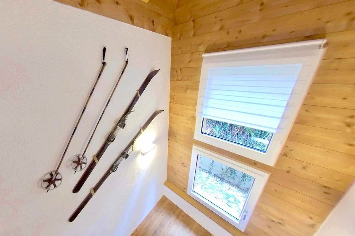 Im Erdgeschoss befindet sich die Sauna und eine grosse Garderobe.