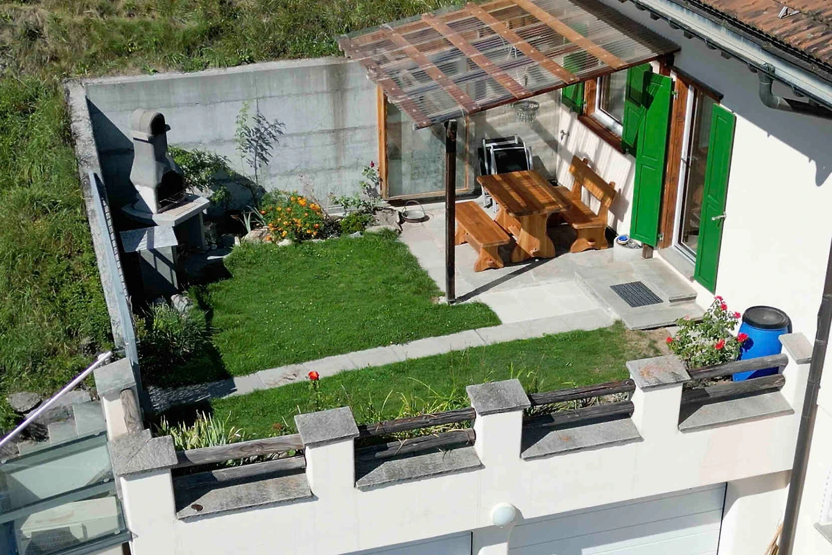 Auf dem Westseite lädt der Gartensitzplatz (36 m2) ein die Nachmittags-und Abendsonne zu geniessen. Grill, Terrassenmöbel, Balkonmöbel und 2 Liegestühle stehen zur Verfügung.