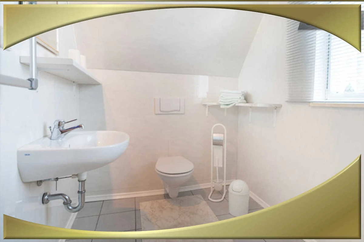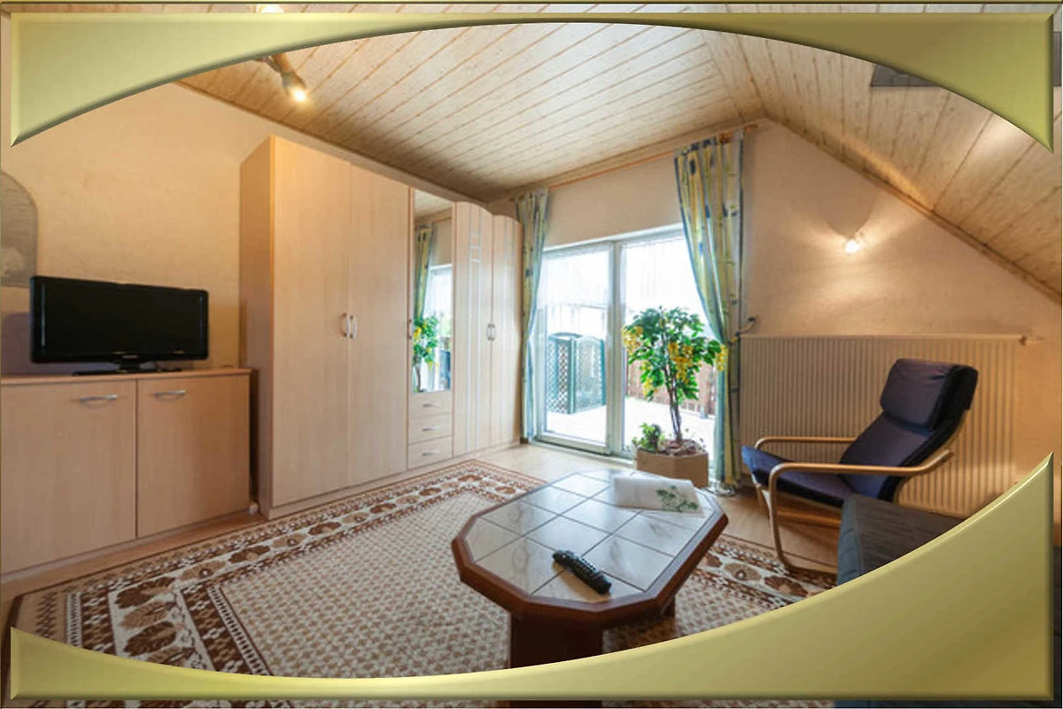 Wohnzimmer, LED-TV, separatem Schlafzimmer, Bad mit Dusche und WC, sowie Miniküche, ca. 45 qm gross, über zwei Etagen