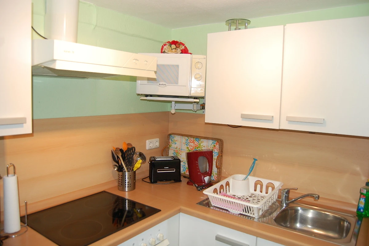 2 Einzelbetten (Kinder)und eine kleine Küche mit Backofen u. Mikrowelle zur Verfügung.