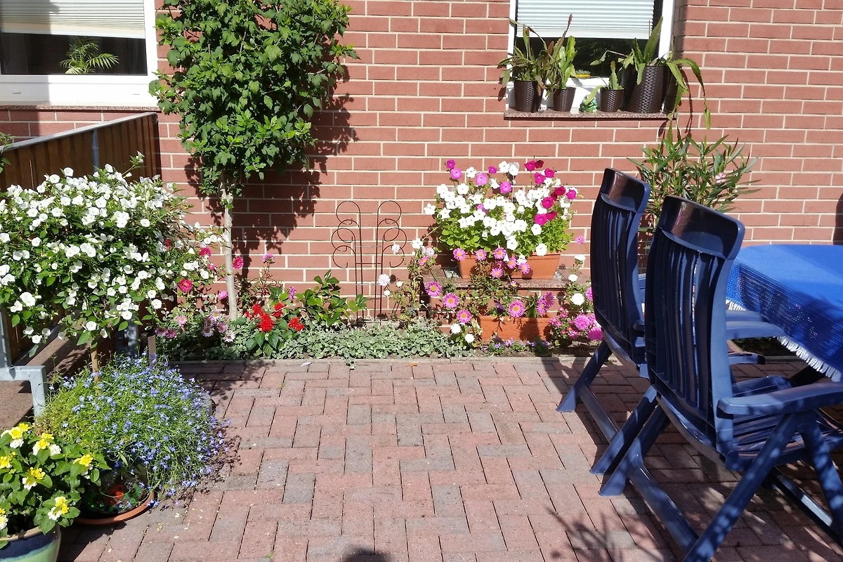 Nutzen Sie bei schönem Wetter die Hofterrasse um gemeinsam zu essen oder nur ein paar Sonnenstrahlen zu tanken .