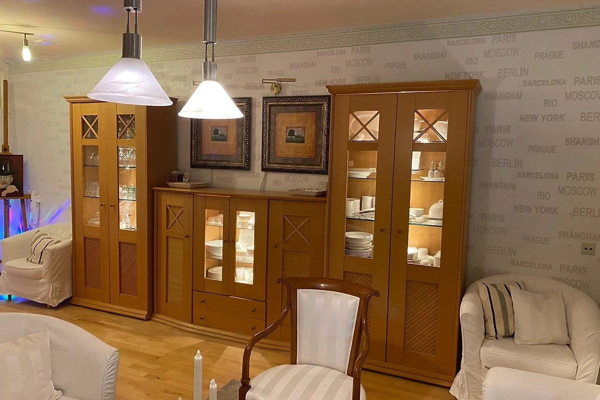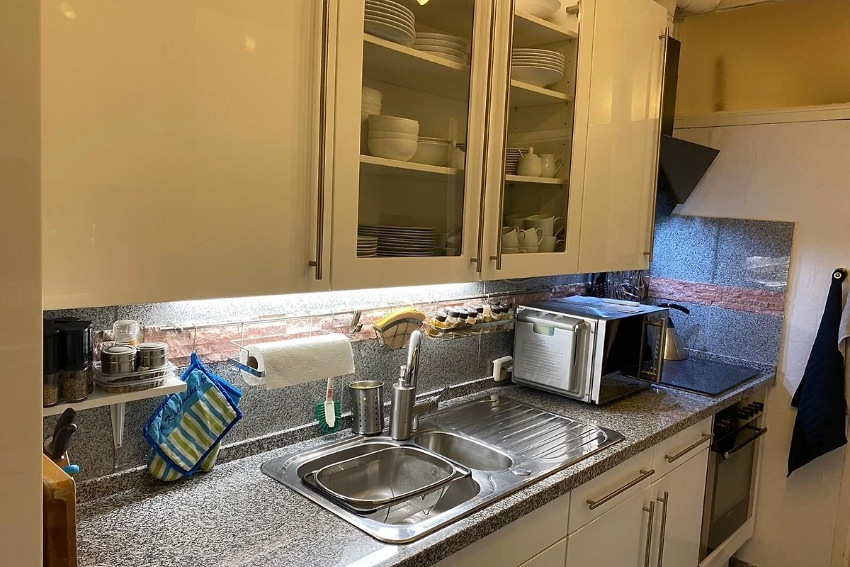 Die Küche ist vollausgestattet mit hochwertigem Geschirr ( Villeroy & Boch) und allen Kochutensilien die in einer Küche benötigt werden, umfangreiche Elektrogeräte sind vorhanden.