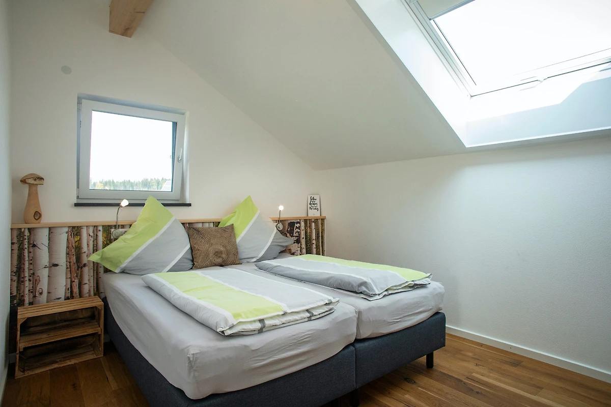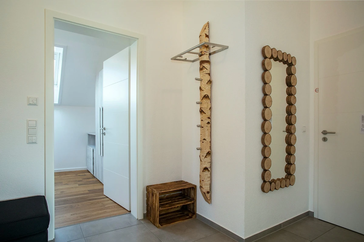 Das Haus am See ist umgeben von mehreren kleinen Wäldern. Unsere kleinste Wohnung greift diesen Charm des Waldes auf und bringt diesen mit Birkenelementen direkt zu Ihnen in die Wohnung. Die Mischung aus Holz, mit weiss und grün lädt zur Gemütlichkeit und zum Verweilen ein und lässt auch Sie hoffentlich den Zauber des Waldes spüren.