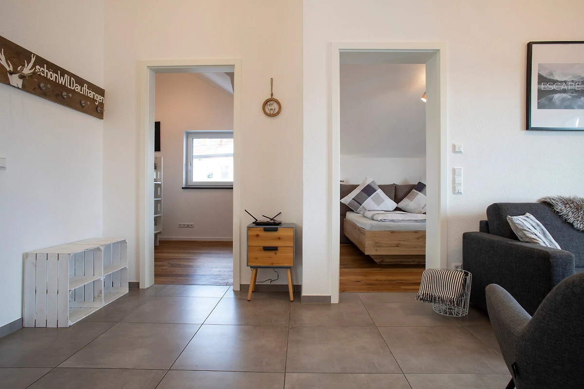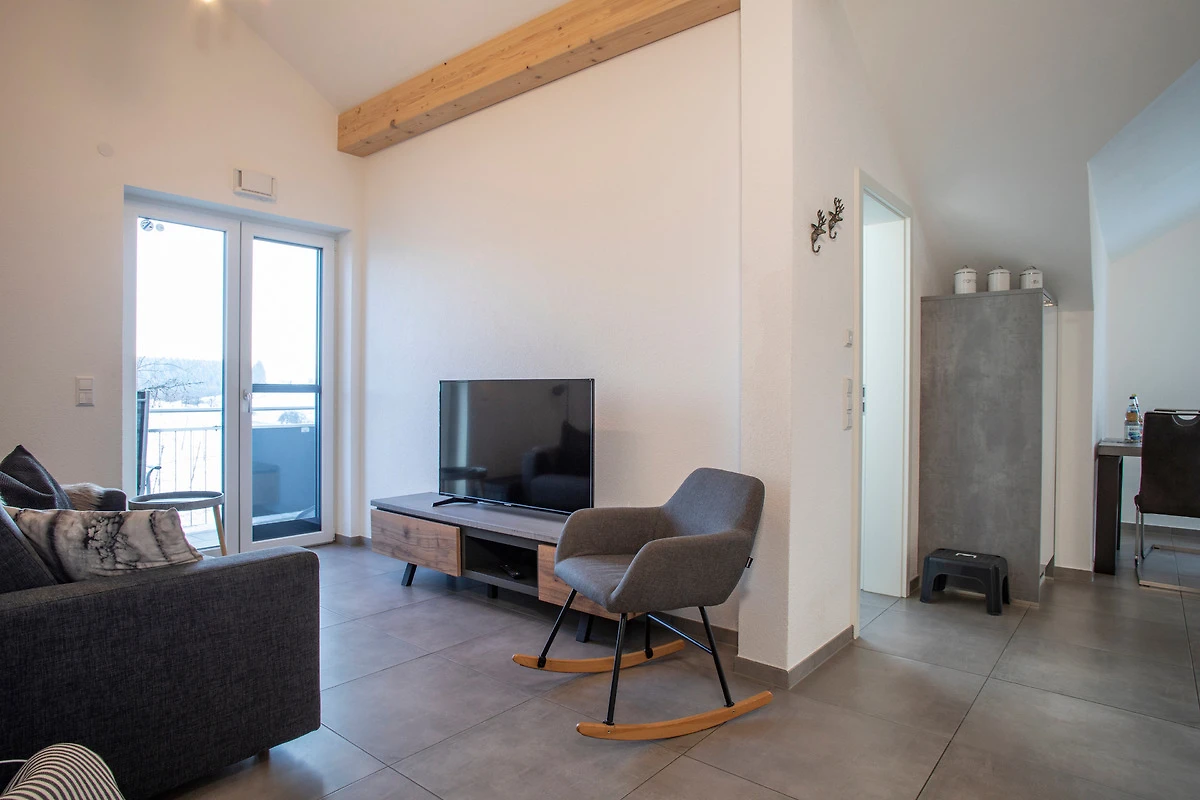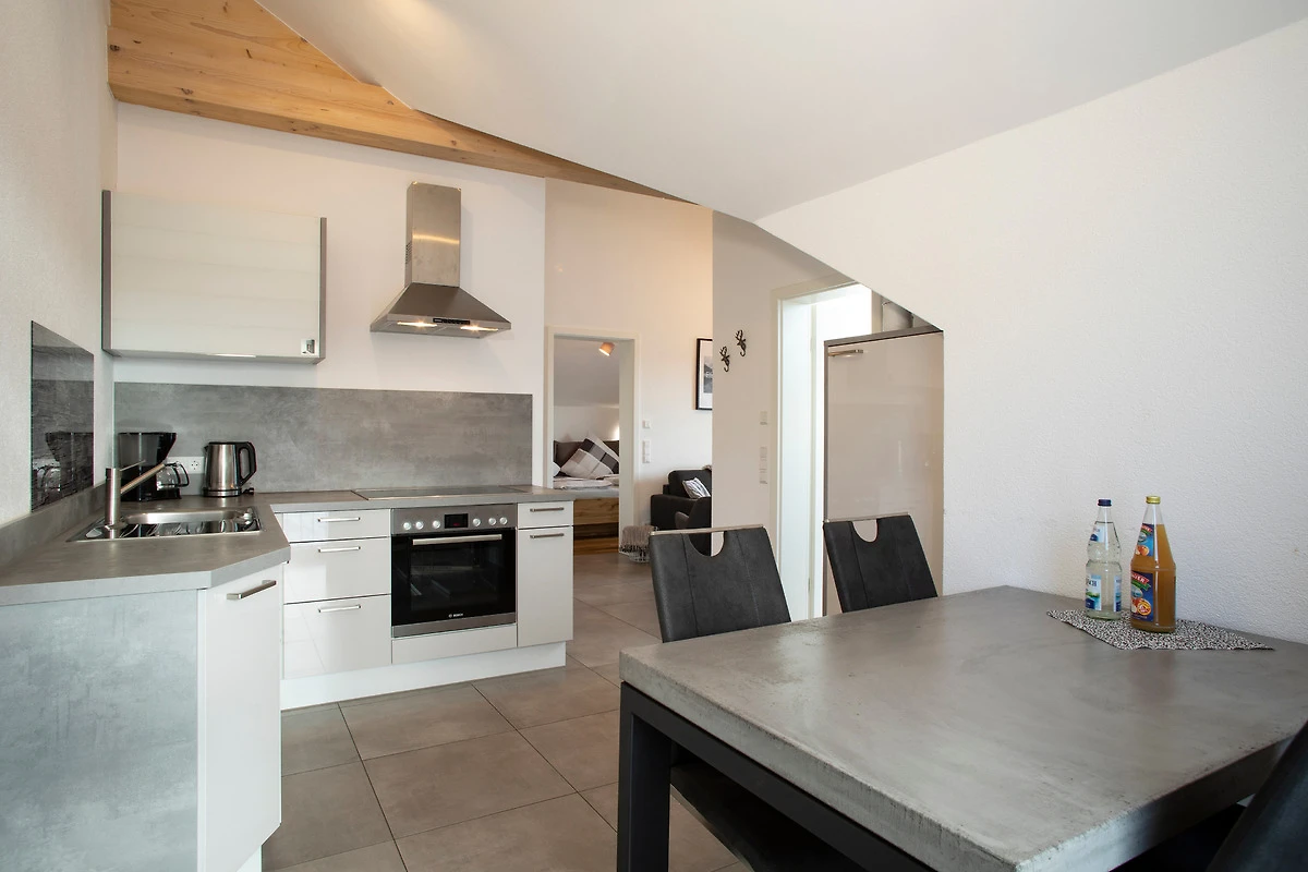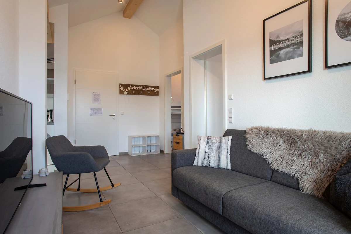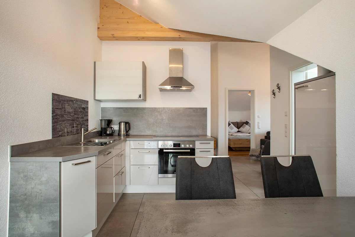 Diesen Zauber der Alpen finden Sie auch in der Wohnung wieder, welche das Flair der Berge aufgreift - das Grau der Felsen, weisse Akzente für Schnee und Edelweiss, sowie rustikales Eichenholz laden zum gemütlichen Verweilen ein.