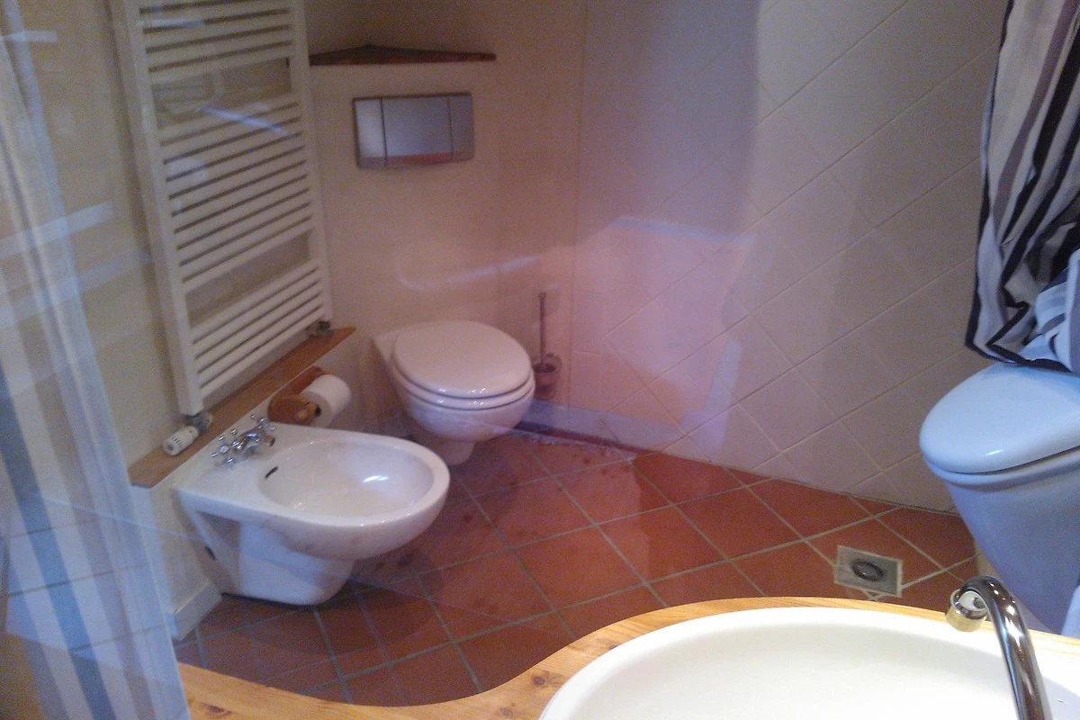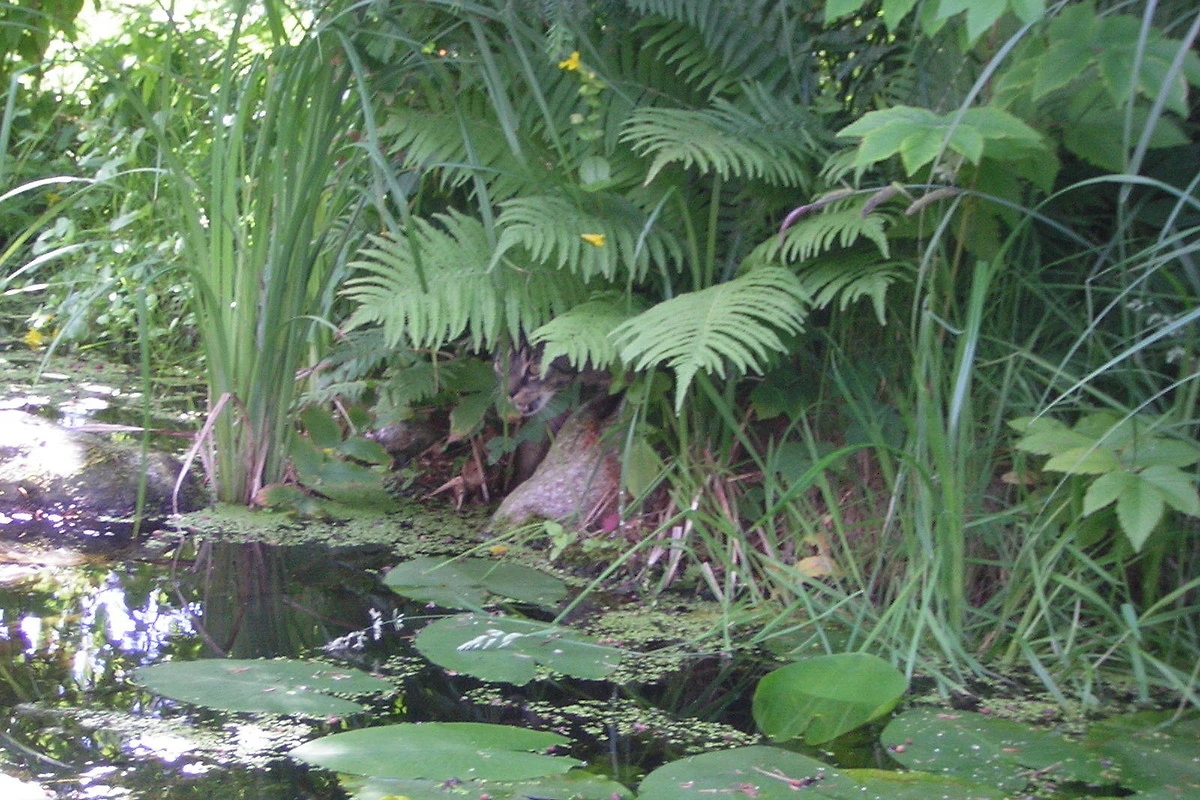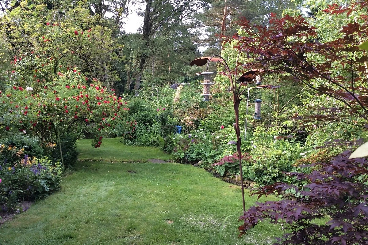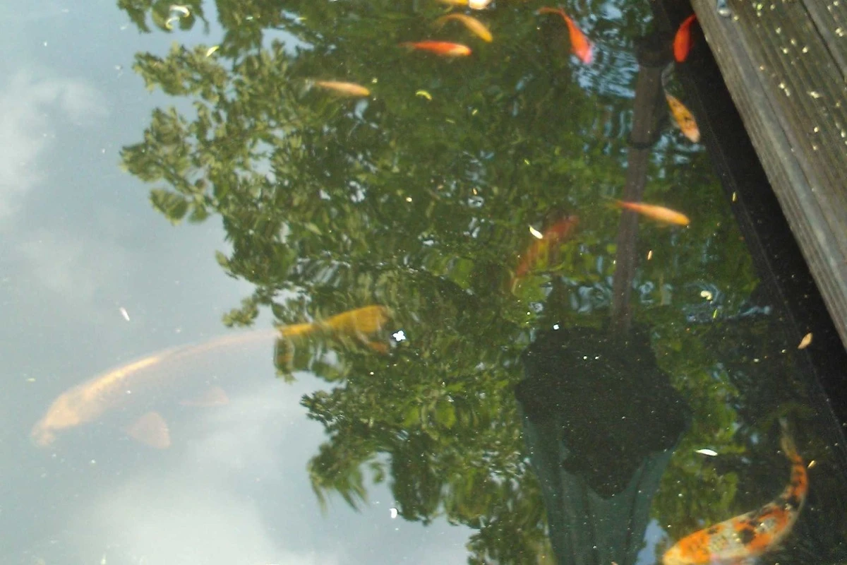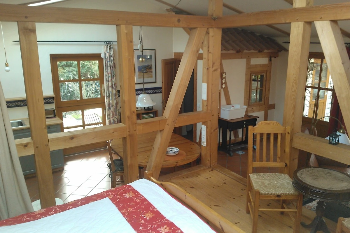Unser 1.700 m² grosses Grundstück hat einen Innenhof, in dem sich eine grosse Kastanien hoch und breit macht. Hier liegt auch der Eingang zum Studio. Durch einen Torbogen gelangen sie in einen grossen naturnahen Garten mit Blumen, Bäumen, Büschen und einem grossen und bewohnten Schwimmteich sowie unterschiedlichen Sitzplätzen.