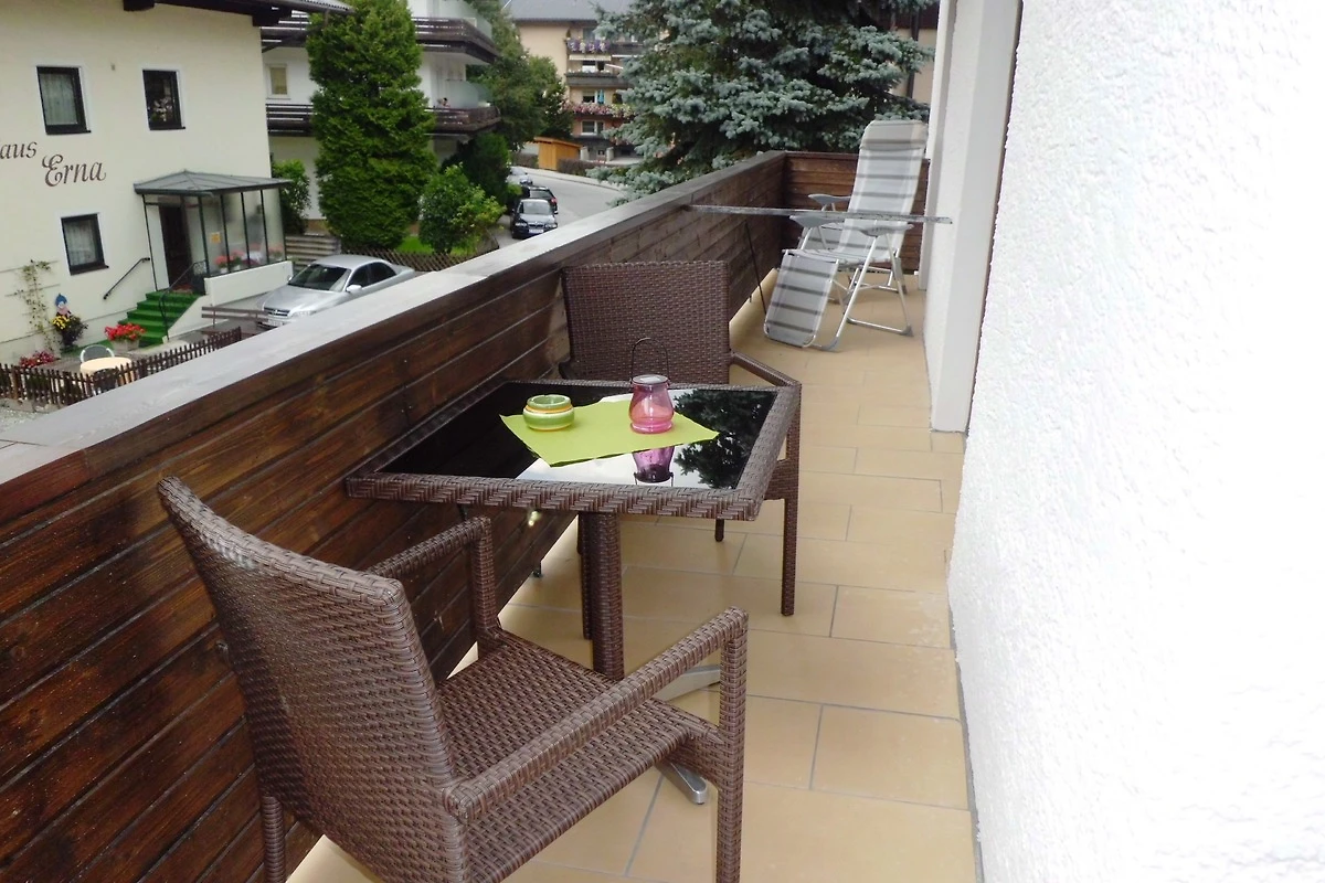 Die Wohnung hat einen schönen Balkon, auf der Sie eine Sitzgarnitur und Sonnenliegen finden. Die Aussicht auf die Bergwelt ist von hier grandios.