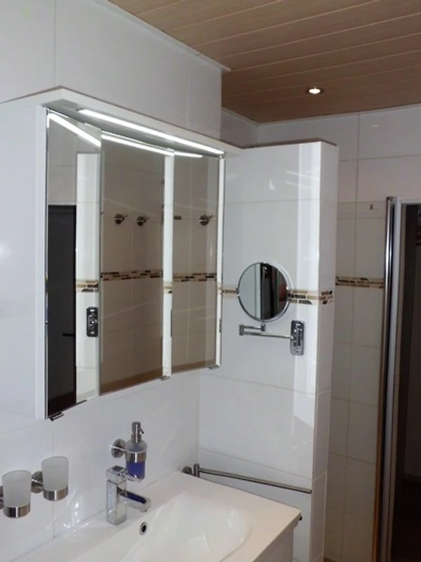Das Bad ist sehr modern gehalten und hat eine grosse barrierefreie Dusche. Der schöne Waschtisch bietet Ihnen genügend Ablagemöglichkeiten für Ihre Pflegeprodukte