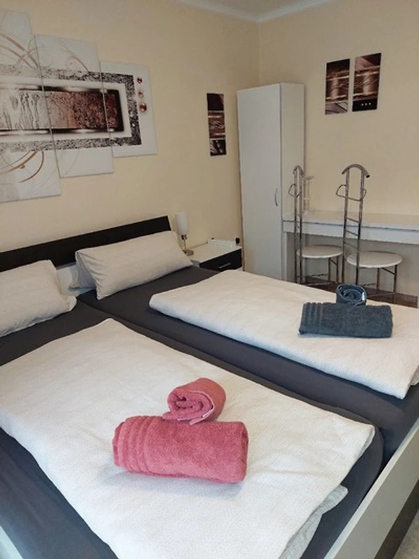 Die 2 Schlafzimmer sind mit Doppelbetten,Kleiderschrank,Herrendiener und Fernseher ausgestattet. Ein Schlafzimmer verfügt zudem über einen Schreibtisch
