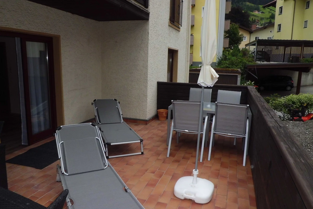 Die 20 qm grosse Terasse verfügt über eine Sitzgarnitur, Sonnenliegen und Sonnenschirm.