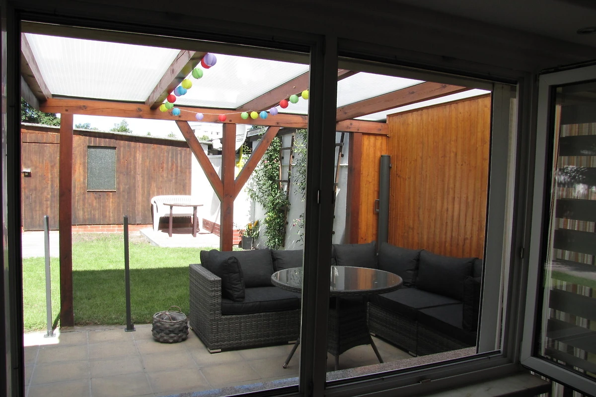 Vom Wohnzimmer aus haben Sie Zugang zu einer überdachten Terasse, auf der Lounge-Möbel zum Entspannen und gemeinsamen Sitzen einladen. Neben der Terasse verfügt der Hof Ihres Urlaubsdomizils auch noch über einen Grillplatz und eine Raucher-Ecke.