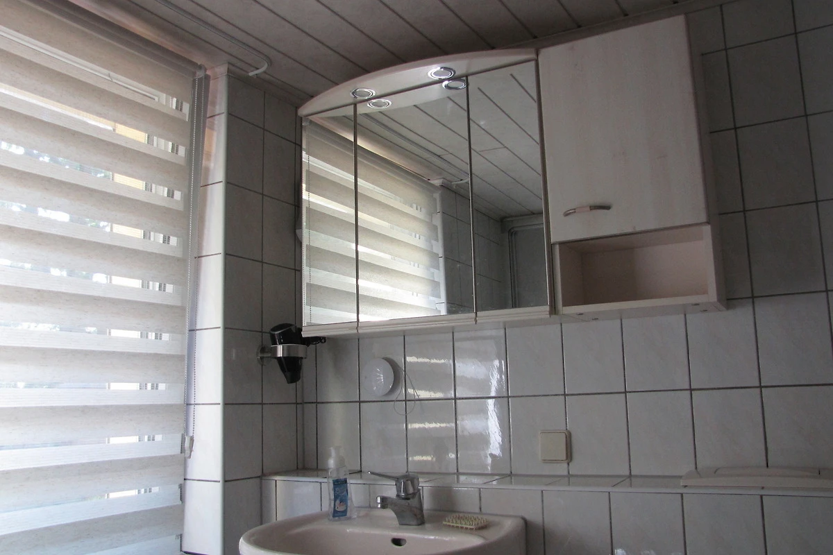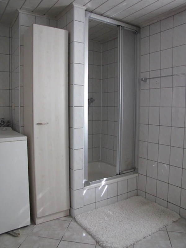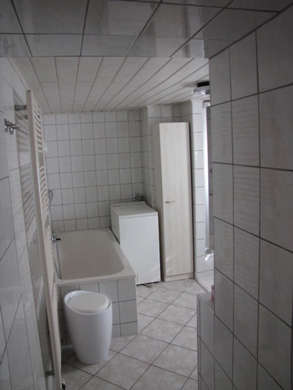Das Badezimmer verfügt neben Waschbecken und WC auch über Badewanne und Dusche. Ausserdem können Sie die dort befindliche Waschmaschine und den elektrischen Wäschetrockner im Schlafzimmer gern mitbenutzen.