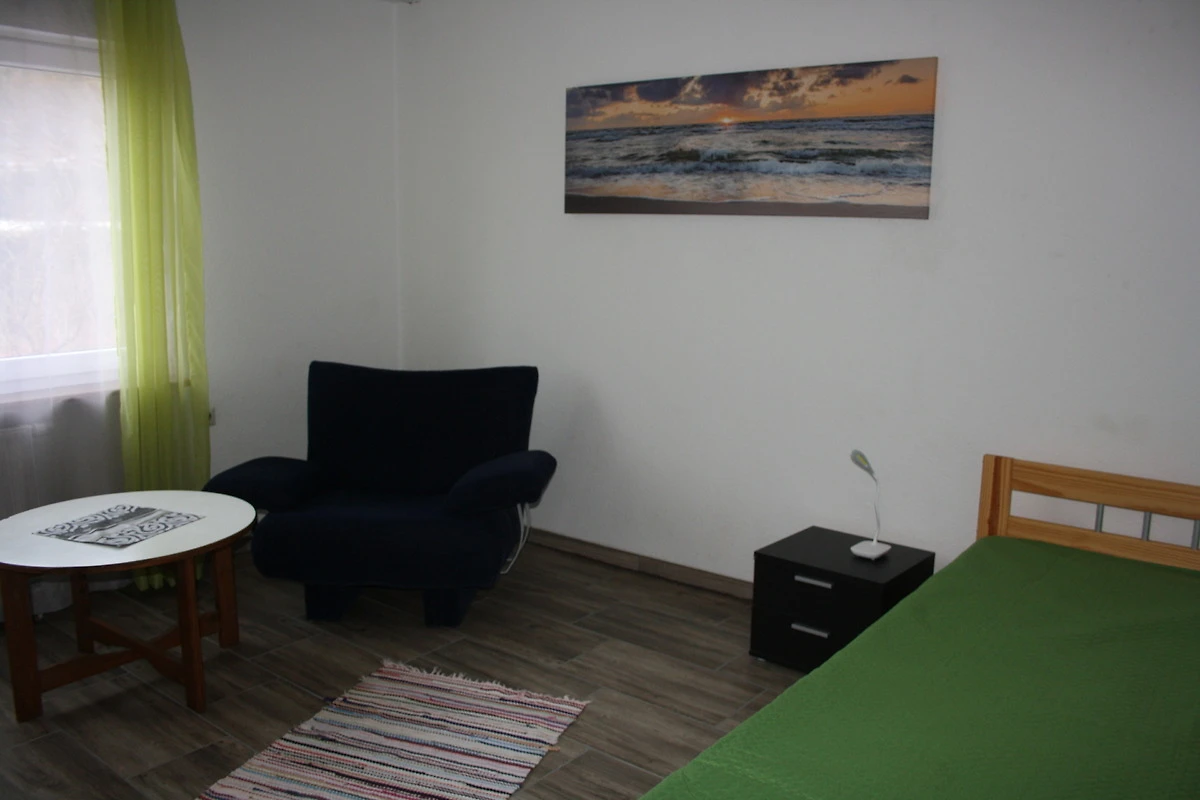 Die Ferienwohnung hat 2 Zimmer mit jeweils 2 bzw. 3 Betten, eine voll ausgestattete Küche mit 4-Plattenherd, Kühlschrank mit Gefrierfach, Mikrowelle, Wasserkocher und Kaffeemaschine. Im Bad befindet sich eine Duchskabine. Im Sommer kann man es sich auf der Terrasse mit Grill gemütlich machen. Es stehen Gartenmöbel zur Verfügung.