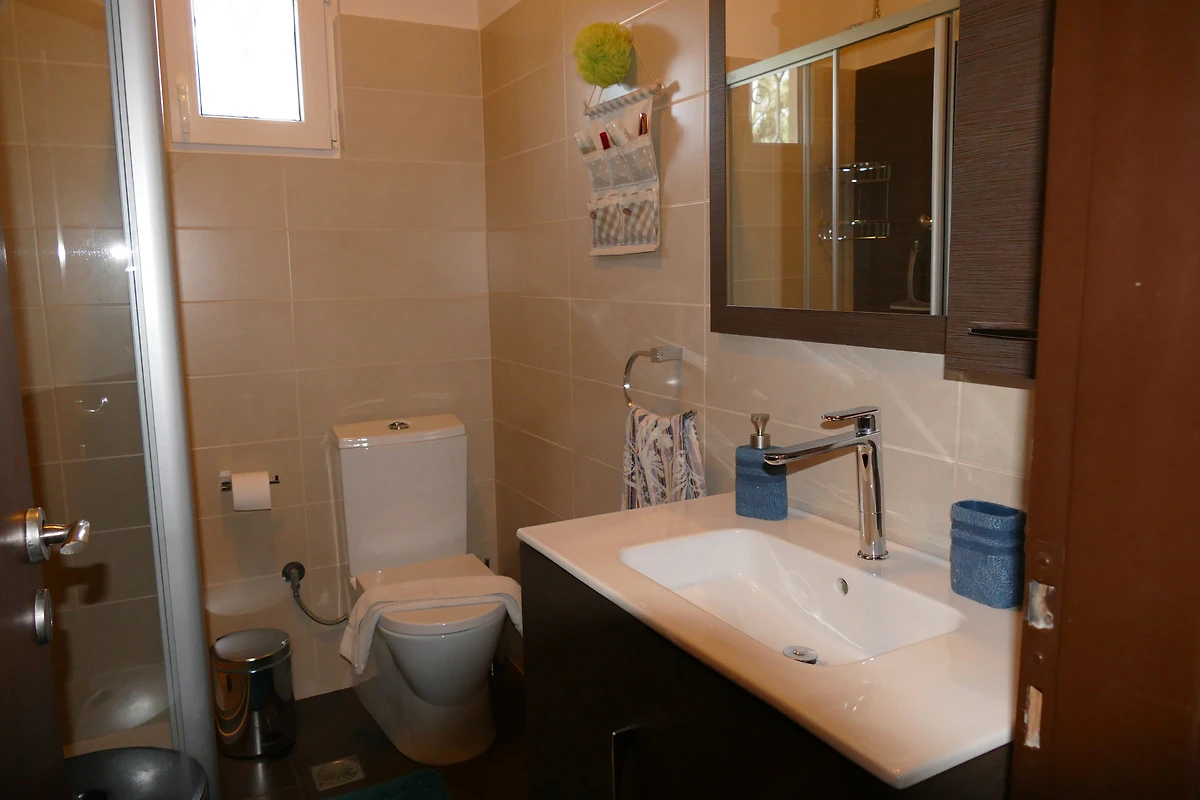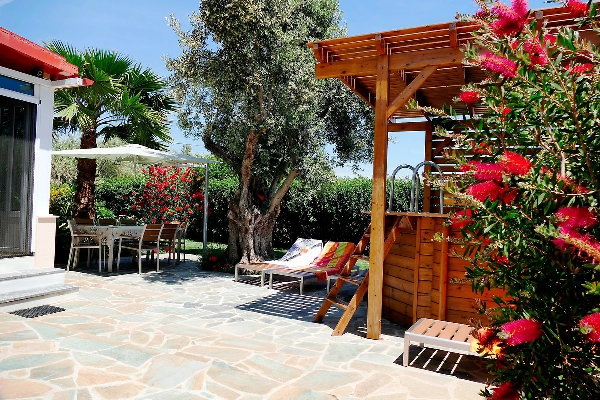 Private Outdoor Oasis: The exterior boasts a beautiful garden, a vegetable plot, comfortable garden furniture, a refreshing shower, grill equipment, and a delightful above-ground pool, exclusively for our guests. Although not directly on the seafront, Esperides Holidays offers the perfect blend of easy access to the beach, grocery stores, and public transportation.