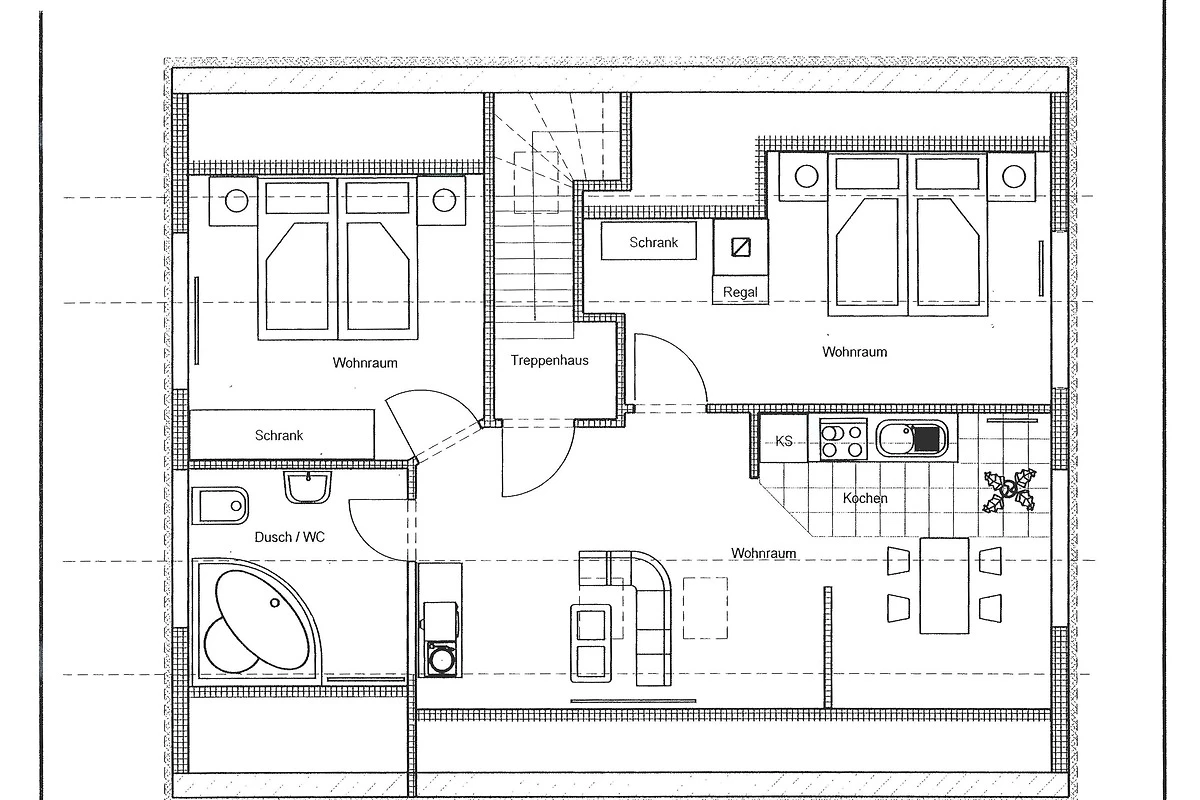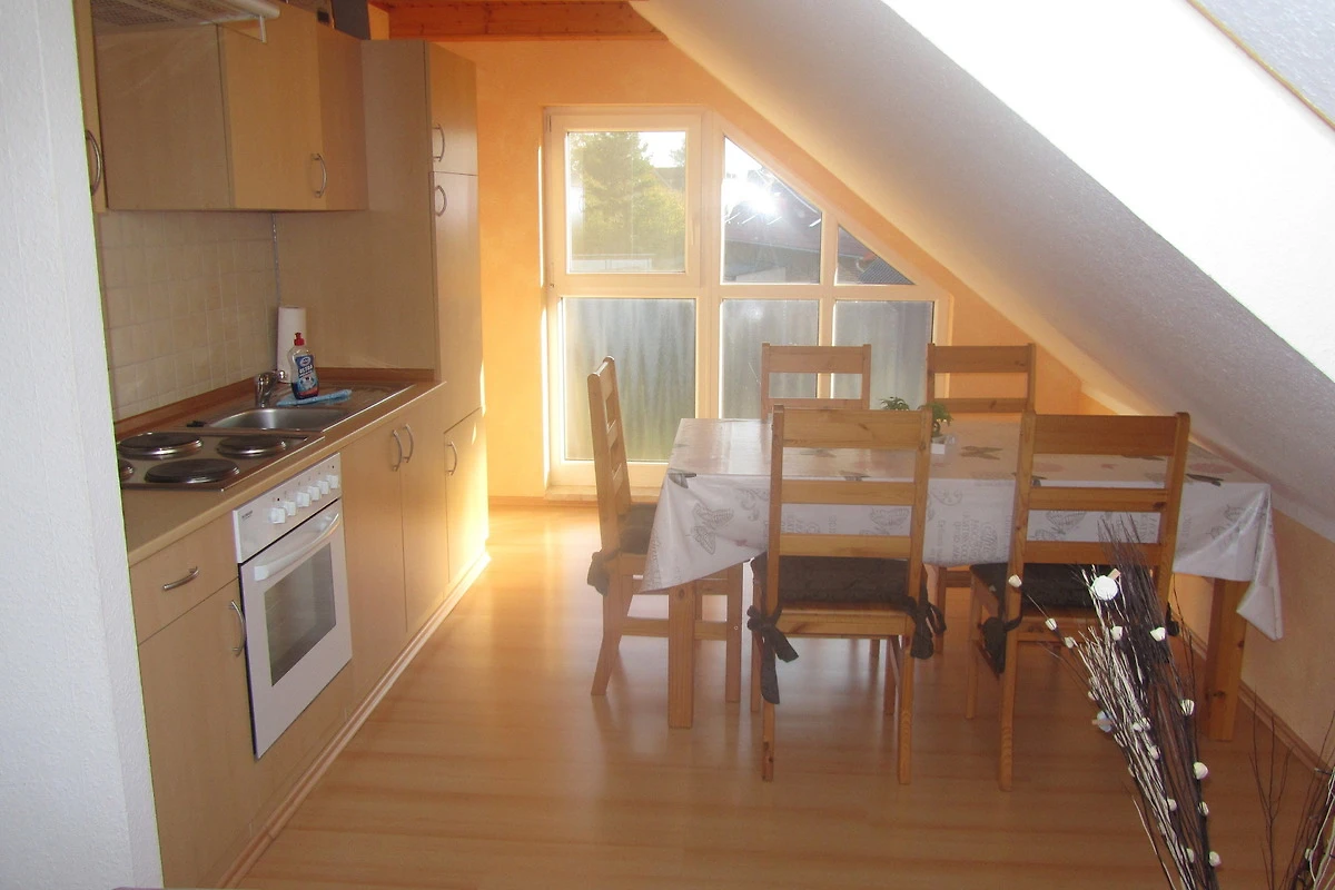 Essplatz und zwei Schlafzimmer, Fussböden Laminat und im Bad Fliesen. Dieses Apartment verfügt über eine