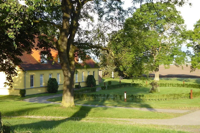 Das 4 Sterne (DTV-Deutscher Tourismus Verein) und kernsanierte Gutshaus ist in drei hochwertig ausgestattete Ferienreihenhäuser aufgeteilt: das West Haus, das Ost Haus und das Mittel Haus. Jedes Ferienhaus besteht aus zwei übereinander liegenden, eigenständigen Wohnungen: die Parterrewohnung und die Galeriewohnung im 1.Obergeschoss. Beide Wohnungen sind über eine eigene, ausserhalb der Wohnungen, aber innerhalb des Gutshauses liegende Treppe verbunden. Ein Haus kann mit insgesamt 8, eine Wohnung mit 2 bis 4 Personen belegt werden, eine Aufbettung kann erfragt werden. Alle Wohnungen können auch einzeln gemietet werden. Die Ferienwohnungen sind im Stile der 1900er Jahre, aber mit heutigem Komfort eingerichtet. Das besondere Ambiente und die Liebe zum Detail werden Sie begeistern! Grosszügig gehaltene Räumlichkeiten mit viel Tageslicht und offenen, lichtdurchfluteten Galerien lassen sofort Wohlbefinden aufkommen. Es steht Ihnen moderne Technik zur Verfügung. WLAN -Zugang im Haus, ein Radio und SAT-TV ergänzen die Einrichtung. Die sanitären Einrichtungen bieten höchsten Komfort: exklusive weisse Designerbäder (Hommage von Villeroy & Boch und Armaturen designet by Phillip Starck) eigene Saunen in den Parterrewohnungen sowie in der Remise bieten Ihnen besonderen Feriengenuss. Geniessen Sie an kühlen Abenden den offenen Kamin und an warmen Sommertagen das Grillen auf dem Freisitz. Kinder sind willkommen, spielen abseits der "Ruhebereiche" Fussball, sind im Trampolin oder in der grossen Spielscheune, Tischtennis, Kicker oder Indoor Trampolin, Auslauf ist garantiert.