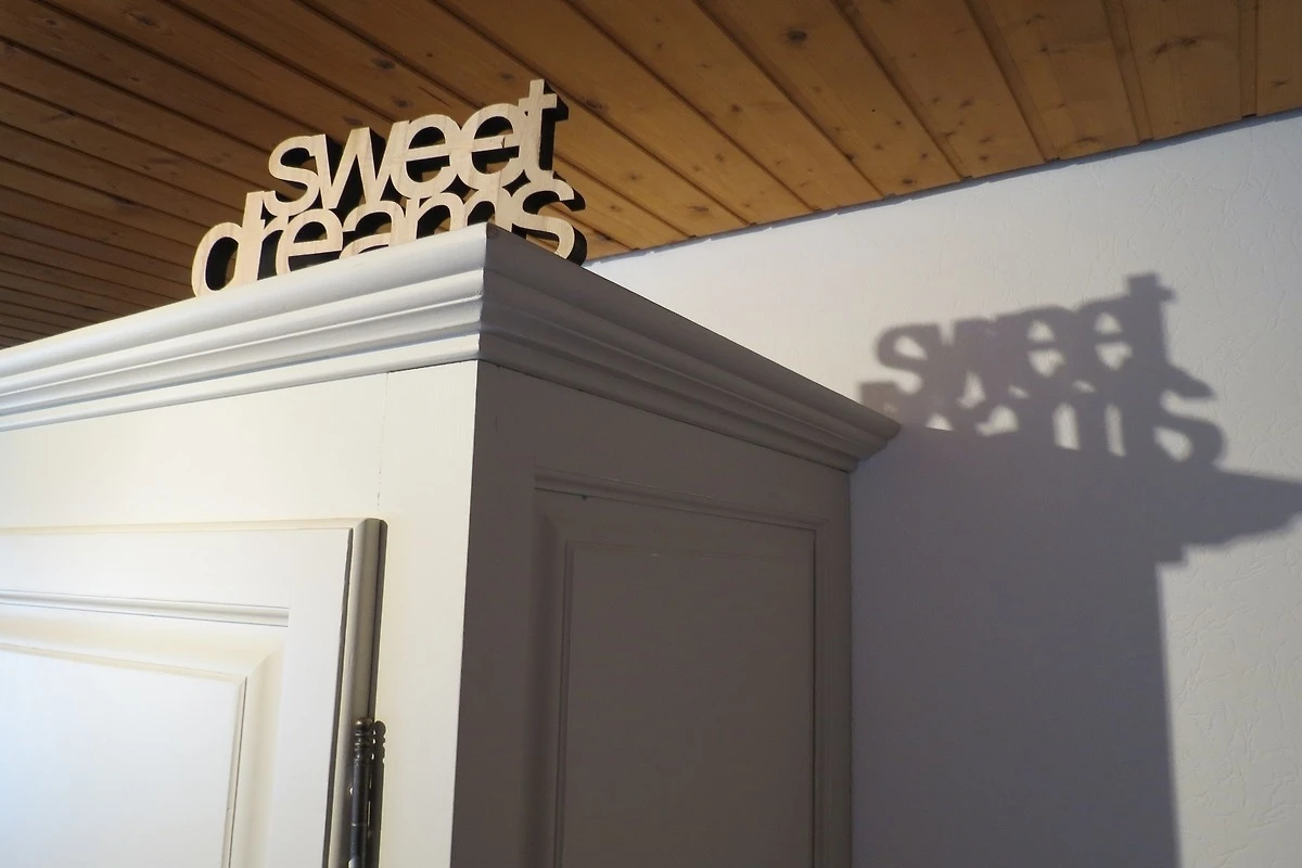 Die Schlafzimmer sind im klassischen Landhausstil eingerichtet. Das Schlafzimmer KINDER-JUGEND ist ausgestattet mit zwei Einzelbetten 90 x 200 cm und 140 x 200 cm, Kleiderschrank 2-türig, Kommoden (auf Wunsch mit Wickelauflage), TV-Board und TV-Gerät. Für Kinder unter 3 Jahren kann ein Kinderreisebettchen aufgestellt werden. Die Schlafzimmer TAUPE und LAMELLE sind ausgestattet mit Doppelbetten, Kleiderschränke 3-türig und Kommoden. Die Betten sind bei Ihrer Ankunft frisch bezogen.