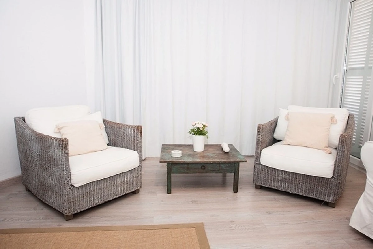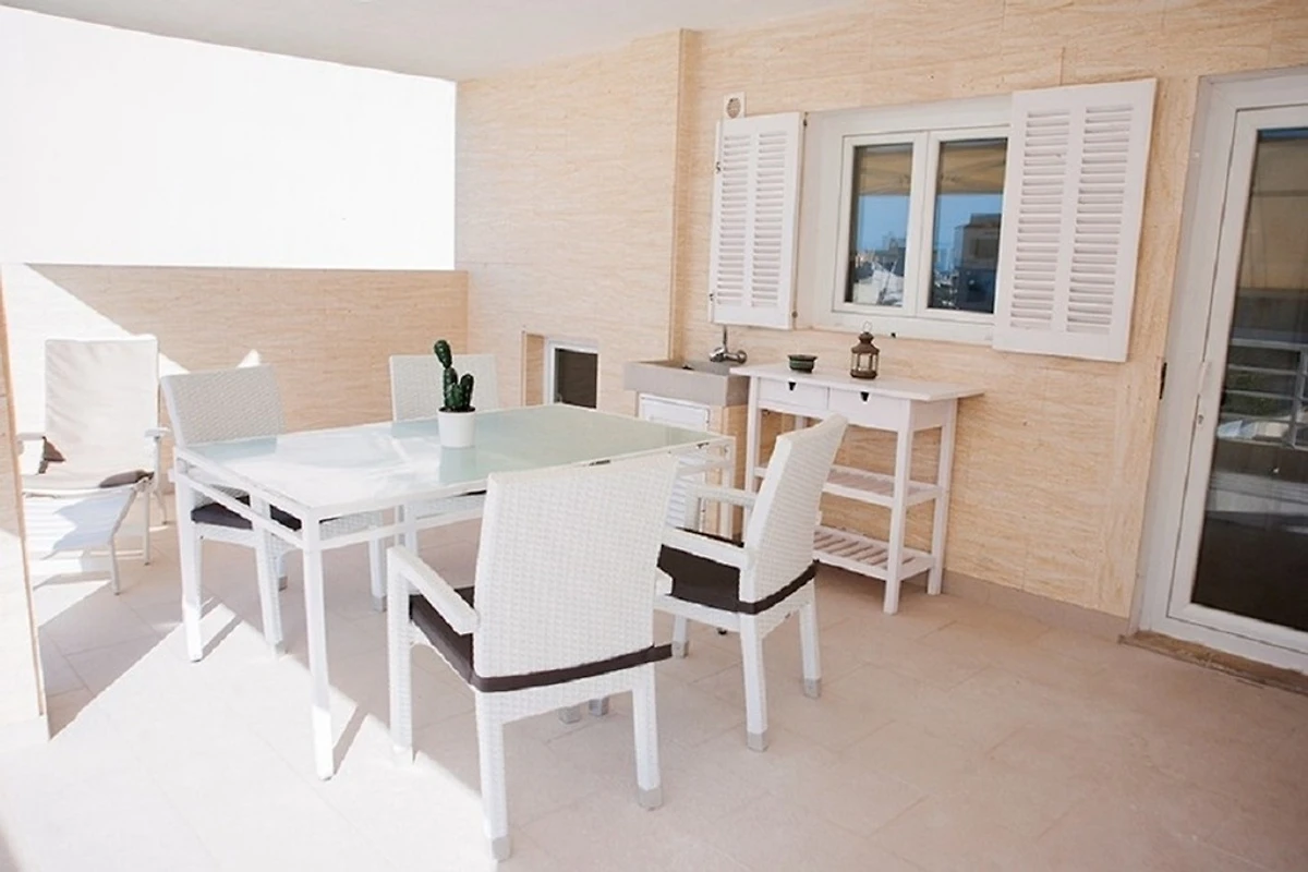 Unsere Ferienwohnung Marieta I in der 1. Etage eines ruhigen Dreifamilienhauses in Colónia St. Jordi ist modern, exklusiv und gemütlich eingerichtet. Die Wohnung lädt zum Erholen und Relaxen ein mit dem gewissen Etwas. Auf einer Wohnfläche von 110 qm verfügt die Ferienwohnung über 3 Schlafzimmer, 2 modere Badezimmer, einen grosszügigen Wohn-/Essbereich und eine hochwertige Küche. Von der Küche gelangt man auf die riesige teilüberdachte Terrasse mit Gartenmöbeln und Sonnenliegen. Sie liegt zentral in der 3. Meereslinie von Colónia de Sant Jordi nur ca. 200 m vom Meer entfernt.
