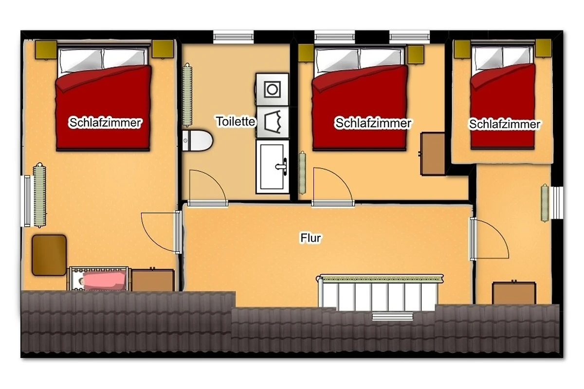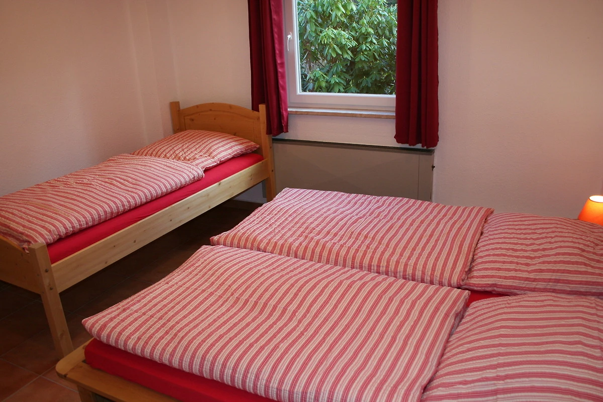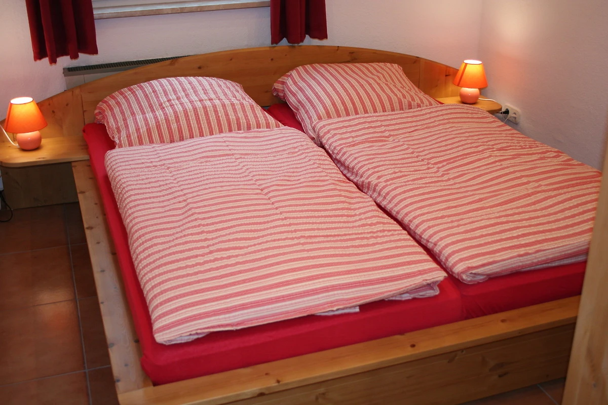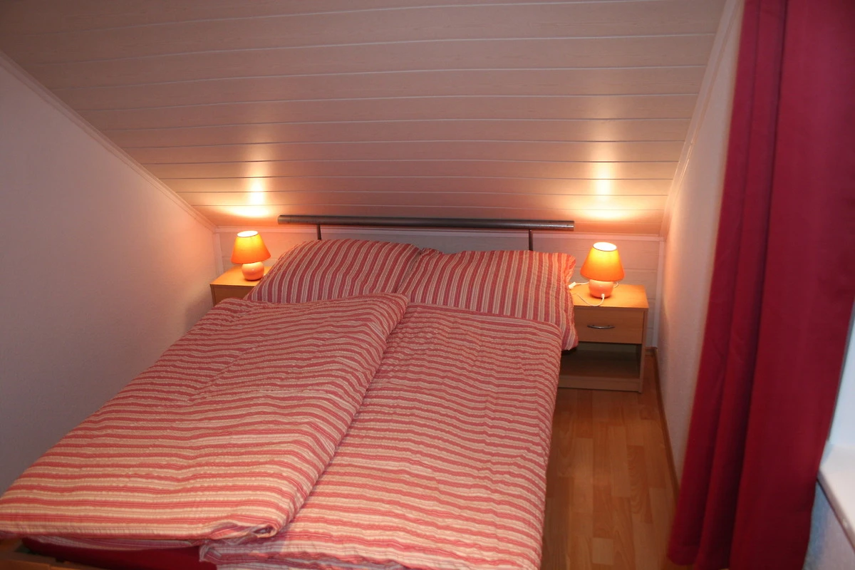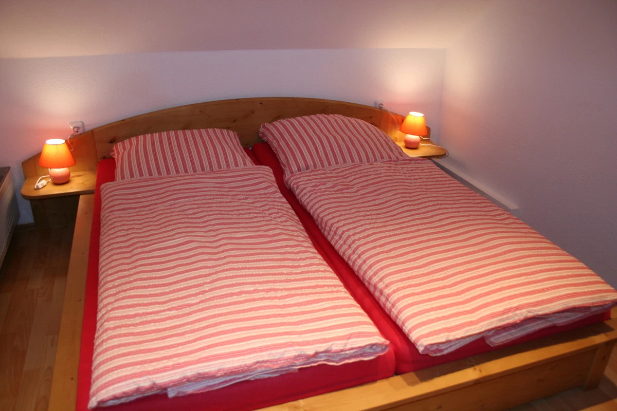 Die vier der fünf separaten Schlafzimmer sind jeweils mit einem Doppelbett, Nachttischen und einem grosszügigem Kleiderschrank ausgestattet. Ein grösseres Schlafzimmer im Erdgeschoss verfügt über ein Doppel- und ein Einzelbett. Die Schlafzimmer sind im Schnitt 9 bis 15qm gross und gemütlich eingerichtet. Zwei Schlafzimmer befindet sich im Erdgeschoss, während alle weiteren Schlafräume im Obergeschoss untergebracht sind.