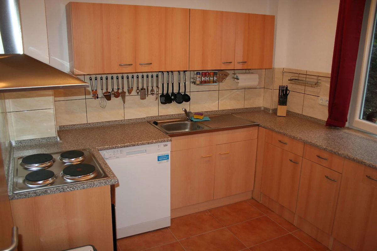 Die grosse und helle Küche ist komplett ausgestattet und lässt Ihrer Kreativität freien Lauf. Das Wohn-/Esszimmer mit etwa 21qm Fläche bietet ausreichend Platz selbst bei Vollbelegung.