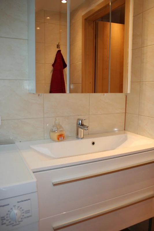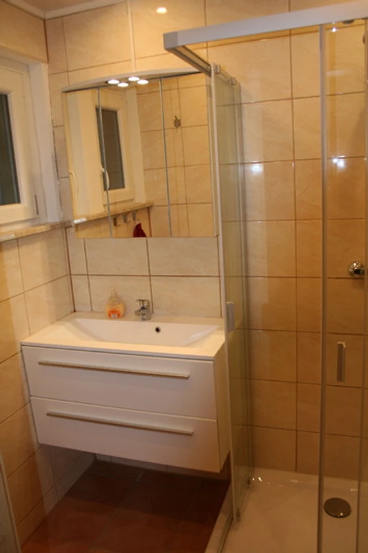 Die Toilette im Erdgeschoss ist mit einem WC, einem grosszügigen Waschplatz sowie einer Dusche ausgestattet. Eine weitere Toilette mit WC und Waschplatz befindet sich im Obergeschoss. Diese Toilette verfügt auch über eine Waschmaschine und einen Trockner.