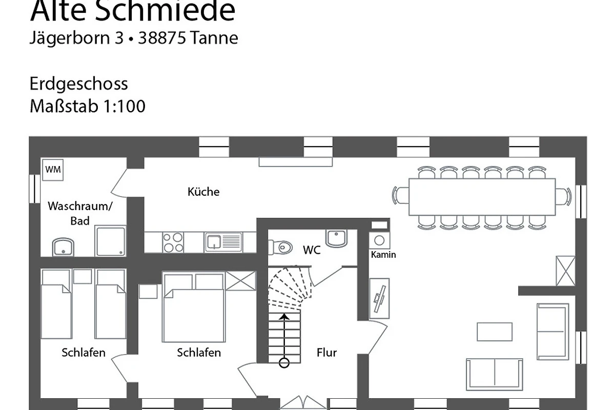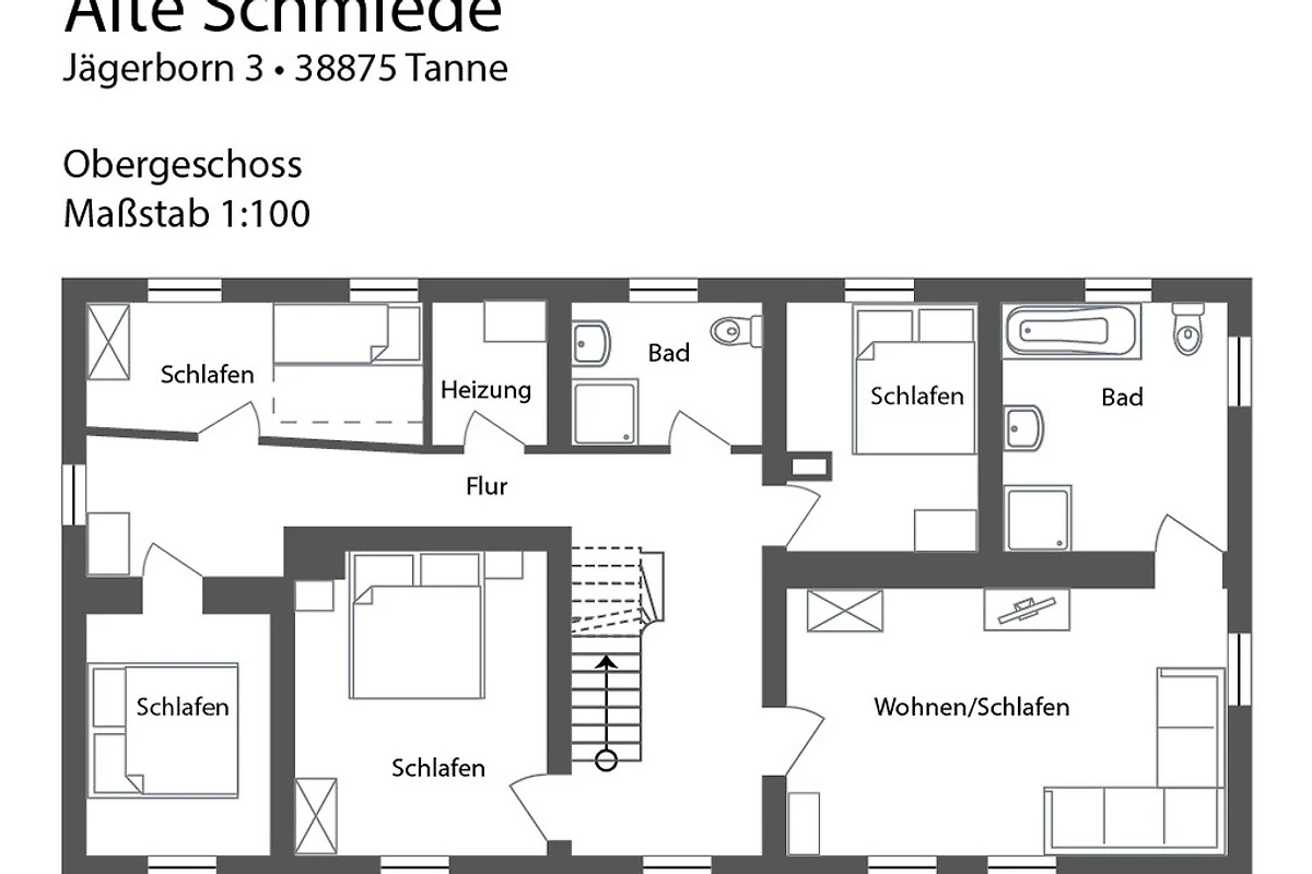 Lage: Der Ort Tanne liegt 500 m über dem Meeresspiegel, ist von viel Wald umgeben und ca. 15 km vom Brocken entfernt. Das grösste Skigebiet im Harz Braunlage/Wurmberg kann man nach 9 km erreichen. Langlaufmöglichkeiten sind ab dem Haus oder in Schierke (12 km) möglich. Die bekannten Orte Goslar, Wernigerode, Quedlinburg, Thale sind nur wenige Autominuten entfernt Eine Eisdiele gibt es im Ort. Direkt am Haus entspringt eine Quelle (Jägerborn), die in die Bode fliesst.