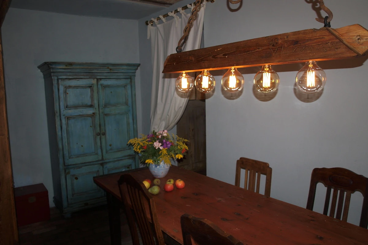 Die Gegend lädt zum Spazieren, Baden und Radfahren ein und in der gesamten Gegend gibt es Kulturveranstaltungen wie Lesungen, Ausstellungen, Theater und Konzerte zu entdecken. Die Kreisstadt Seelow ist 7km entfernt und bietet gute Einkaufsmöglichkeiten. Im unteren Teil des Hauses befindet sich der Wohnraum mit einem grossen Tisch und gemütlichen Sitzgelegenheiten, die Küche und das Bad mit Badewanne. Die Zimmer in der oberen Etage sind mit Echtholzdielenböden ausgestattet. Es gibt zwei seperate Schlafzimmer mit jeweils einem Doppelbett. Weiterhin befindet sich im oberen Breich ein Alkoven, in dem zwei Einzelbetten stehen. Zugang für Gäste Meinen Gästen steht der gesamte Wohnraum zu alleinigen Verfügung. Das Haus verfügt über einen seperaten Zugang und einen eigenen Garten.
