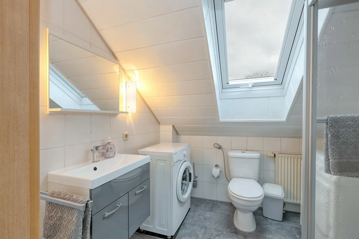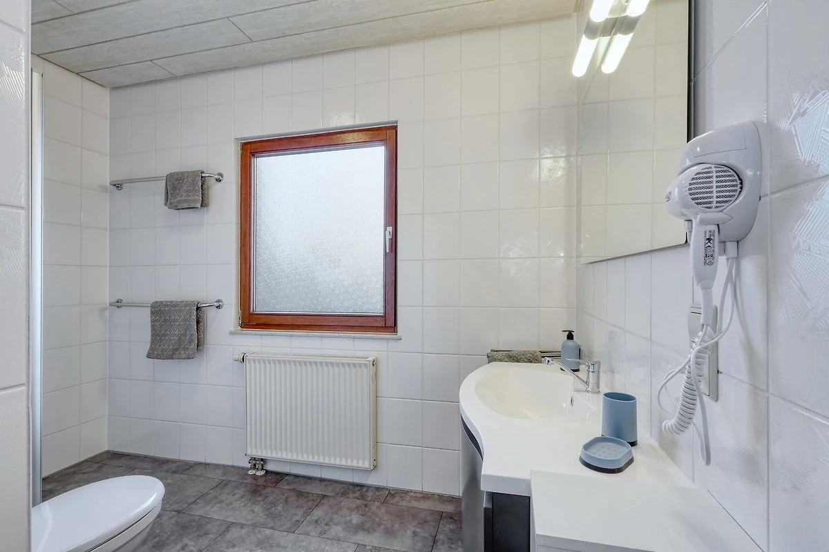 Im unteren Stockwerk finden Sie ein grosses Badezimmer mit Dusche . Im oberen Stockwerk befinden sich die 4 Schlafzimmer (1 davon klimatisiert) und ein weiteres Bad.