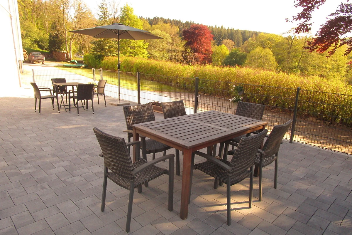 Das Haus verfügt über einen grossen Garten mit Terrasse, Spielecke, Baumhaus, Sandkasten, Trampolin und grosser Liegewiese. Eine Reihe von Wanderwegen beginnen im Wald hinter dem Haus.