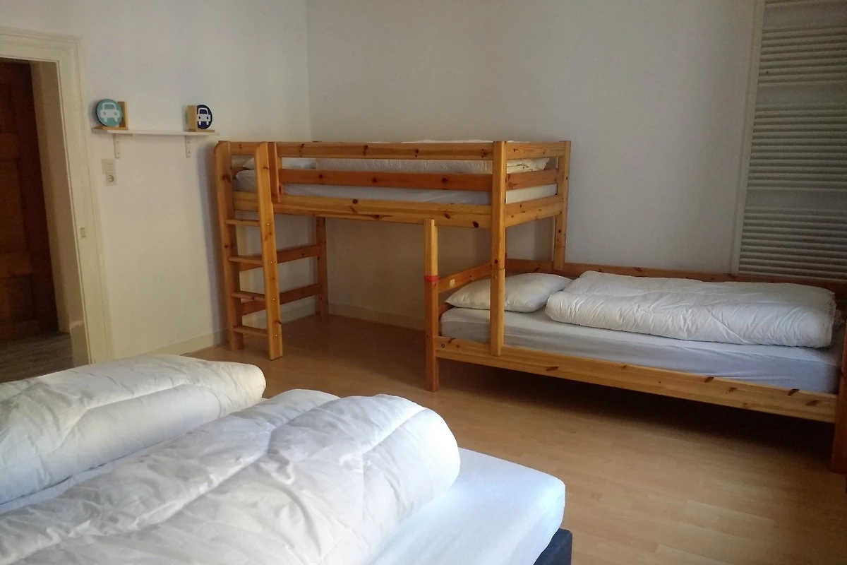 Es gibt zwei Schlafzimmer, eines mit 2 Einzel-Boxspringbetten und ein Etagenbett, und das andere Schlafzimmer verfügt über ein Doppelbett.