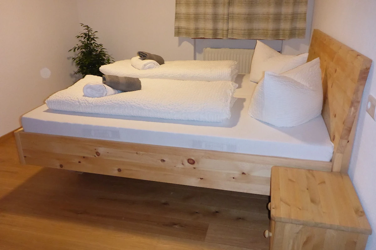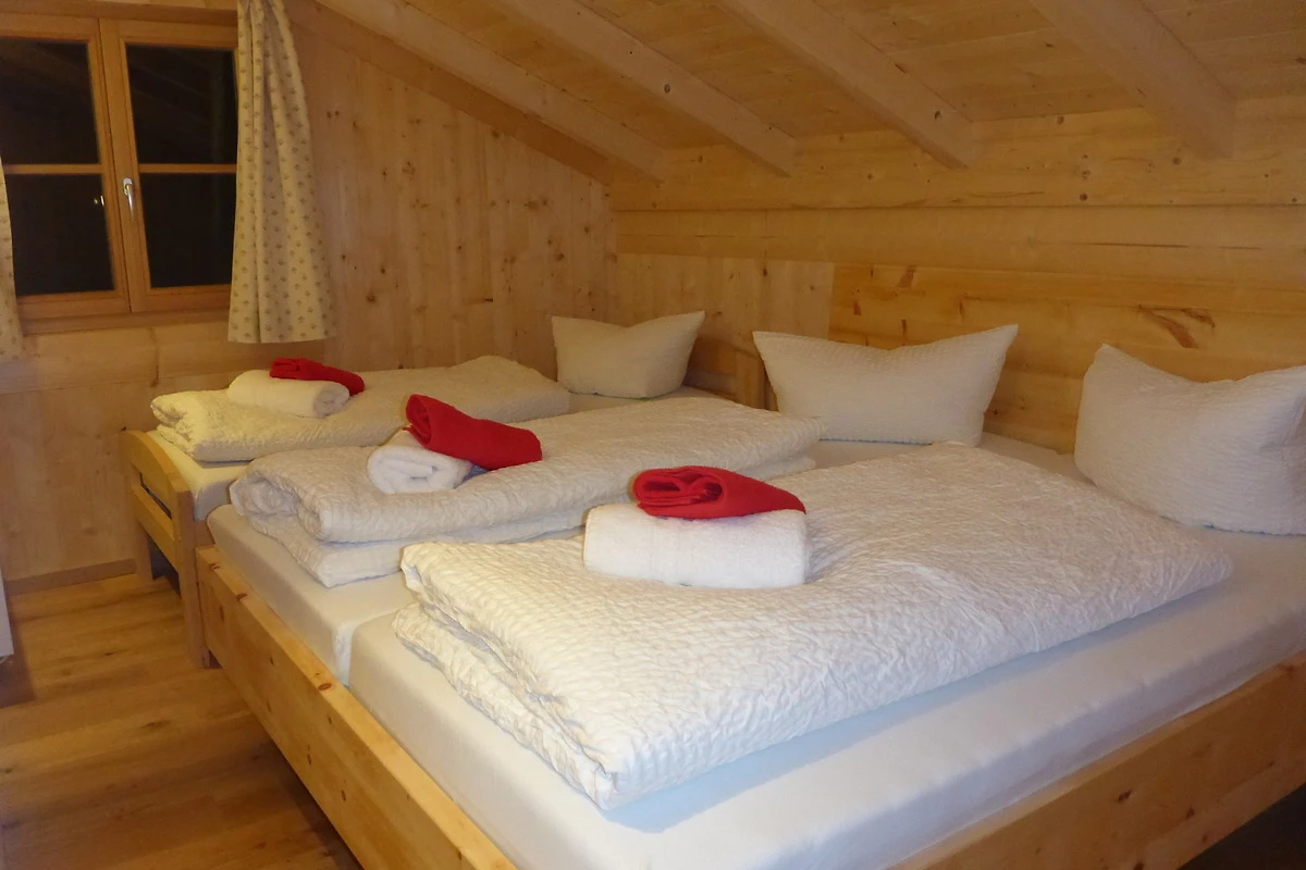 Wir wollen, dass Sie sich wohlfühlen, und möchten etwas für unser Klima tun. Deshalb haben wir uns entschieden, dass wir unseren neuen Anbau in Holzblockbauweise erstellen lassen. Dazu passend haben wir auch Echholzböden verlegt. Das Badezimmer ist grosszügig mit einer grossen ebenerdigen begehbaren Dusche und einem Fenster ausgestattet. Die Küche ist mit einem offenen Durchgang zum grossen Esszimmer verbunden. Um Ihren Schlaf positiv zu unterstützen haben wir die Schlafzimmer mit Zirbenkiefermöbel eingerichtet. Im Sommersteht für Sie ein eingezäunter Garten zum Grillen und zum entspannen zur Verfügung.