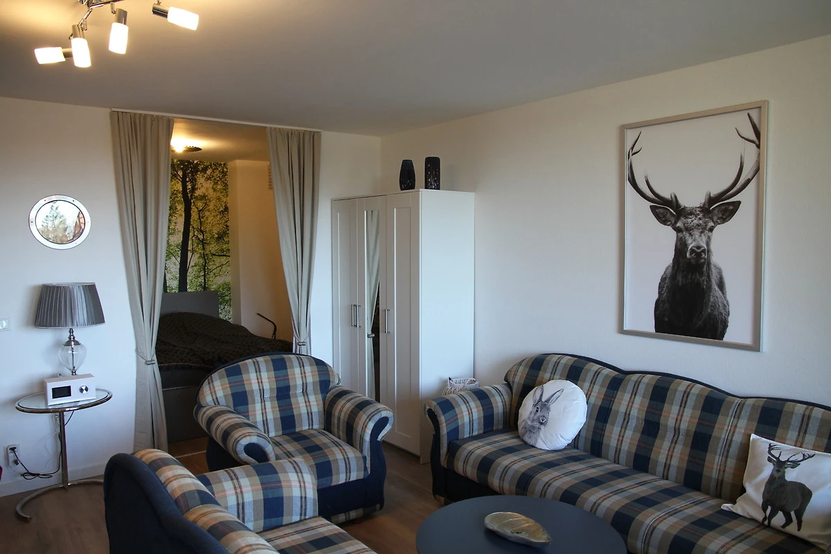 Das Apartment umfasst ca. 47 m² und ist komplett neu ausgestattet. Das Wohnzimmer hat eine Grösse von ca. 25m². Zum Wohlfühlen gehören neben einem Flachbildfernseher (mit SAT-Anschluss) natürlich auch kostenfreies WLAN und Festnetztelefon dazu.