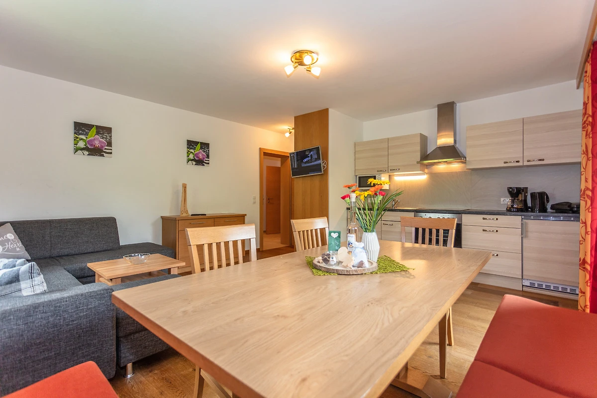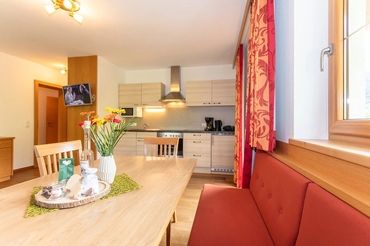 Ihr Appartement befindet sich auf der ersten Etage und bittet Platz für 4 Personen. Es besteht aus einem grossen Wohnzimmer mit offener Küche, 2 Schlafzimmern und einem modernen Badezimmer. Vom Balkon haben Sie einen atemberaubenden Blick auf den Nationalpark Hohe Tauern. Aufgrund der etwas erhöhten Lage ist auch der Blick auf den Ort sehr imposant.