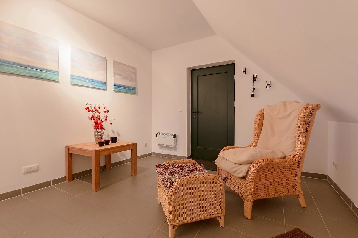 Der gesamte Garten mit seinen hochwertigen Gartenmöbeln steht Ihnen zur freien Verfügung. Auf den jeweiligen Terrassen haben Sie Gartenmöbel und Liegestühle nur für sich. Zusätzlich gibt es in unserem Garten überall die Möglichkeit, es sich in den unterschiedlichen Ruheoasen gemütlich zu machen. Eine Augenweide sind auch unsere drei Teiche, die durch einen Bachlauf verbunden sind.