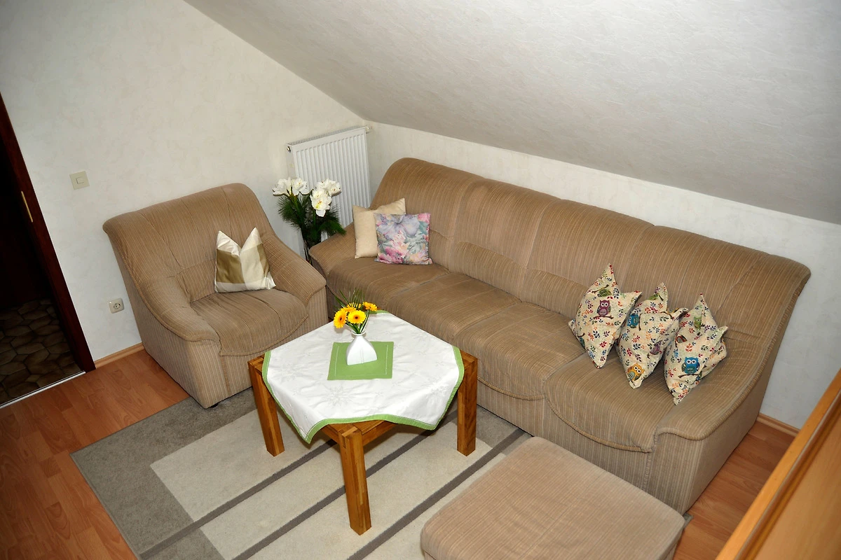 Die Ferienwohnung in unserem familienfreundlichen Haus verfügt über drei Schlafzimmer, sowie ein Bad mit Dusche und WC. Im gemütlichen Wohnraum mit Sitzgruppe und TV befindet sich auch die gut ausgestattete Einbauküche mit Esstisch, E-Herd, Kühlschrank mit Gefrierfach, Spülmaschine, Kaffeemaschine, Microwelle, Wasserkocher, Toaster usw.