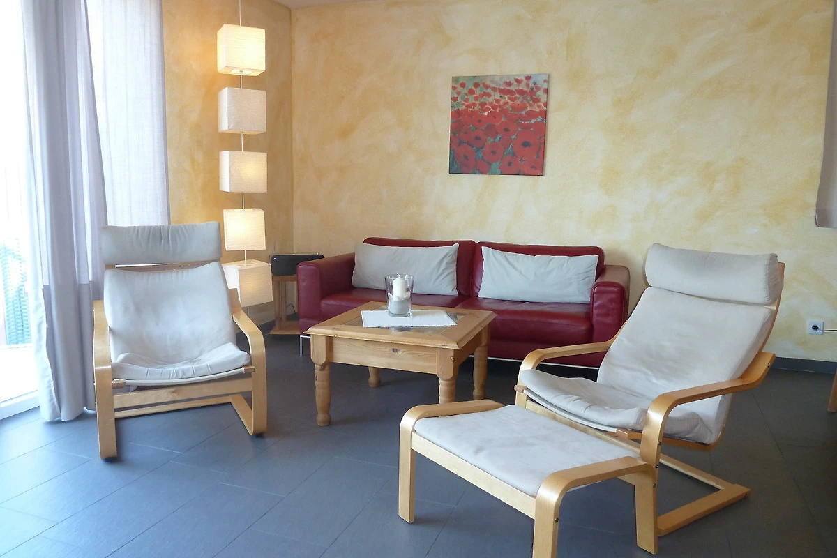 Sie hat einen direkten Zugang zur ca. 12m² grossen Terrasse in Südausrichtung, die mit Gartenmöbel für 2 Personen ausgestattet ist.