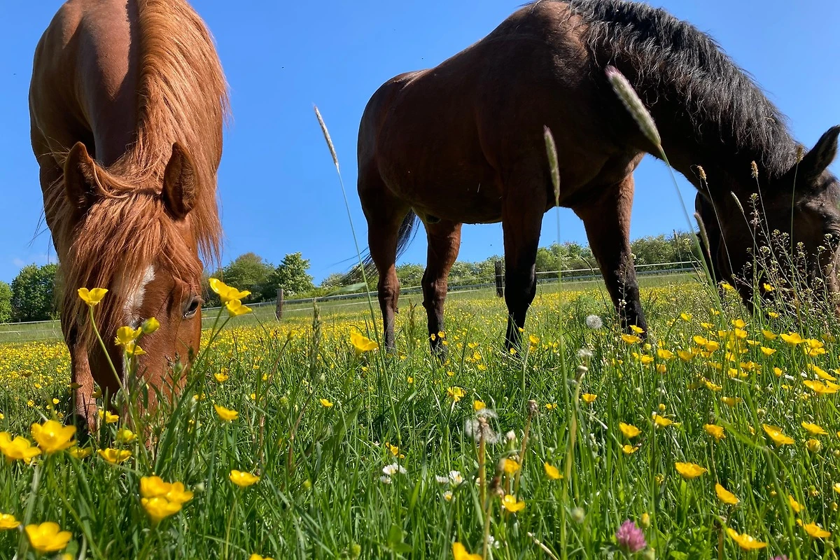 Auf unseren 2 lieben Pferden kann geritten werden, mit den Kettcars die Gegend erkundigt werden.