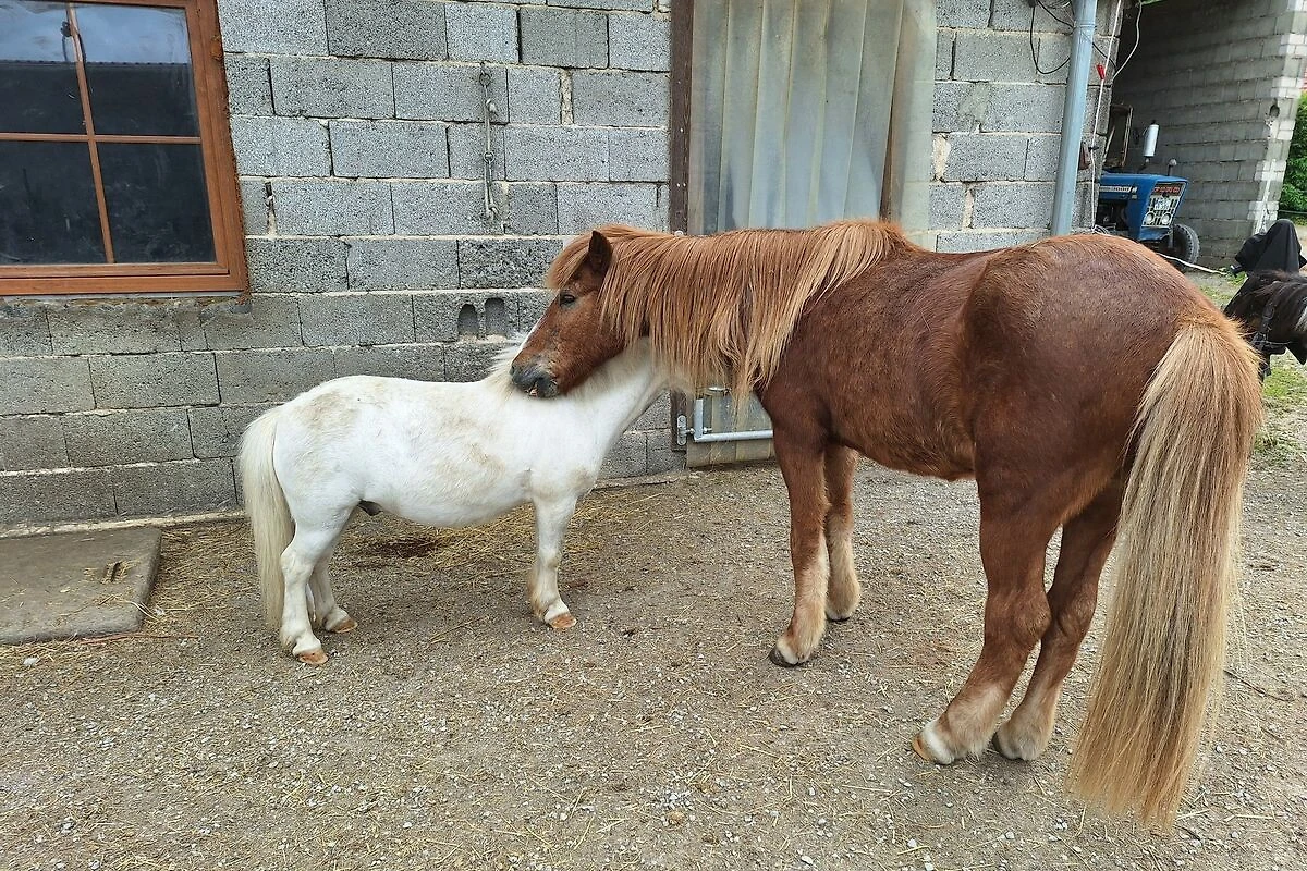Die Wohnung grenzt an einem kleinen Bauernhof. Hier leben unsere Hühner, 6 Ponys Tom, August, Viggur, Soli, Sünna und Busla, unsere Hasen und unser Hund Lu.