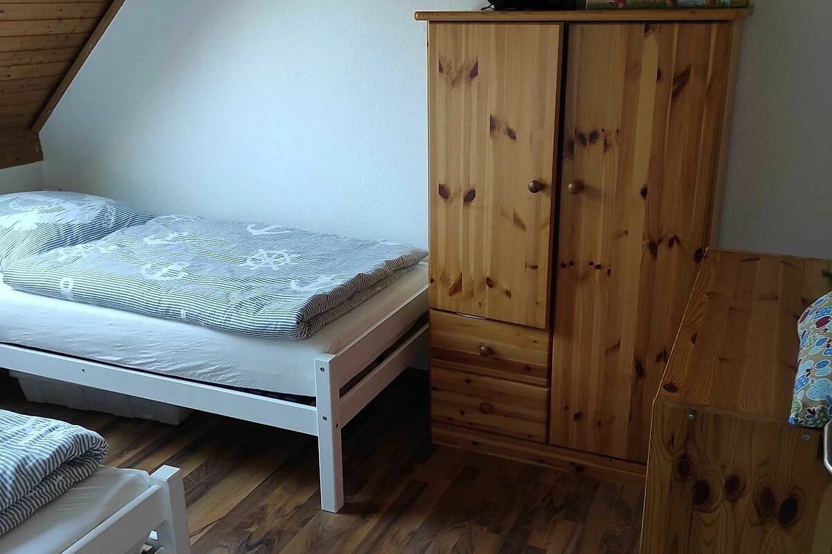 Alle drei Schlafzimmer sind mit jeweils zwei Betten (90cm x 200cm) ausgestattet. Die Matratzen und das Bettzeug sind neuwertig und werden regelmässig erneuert. Die Dachfenster lassen sich verdunkeln und auch Fliegengitter sind vorhanden. Ein Kinderreisebett (HAUK) steht Ihnen zur Verfügung (ohne Bettzeug). Das Schlafzimmer im Dachgeschoss verfügt über einen Fernseher.