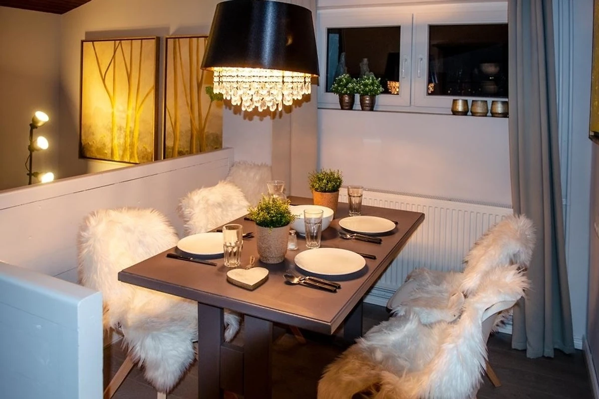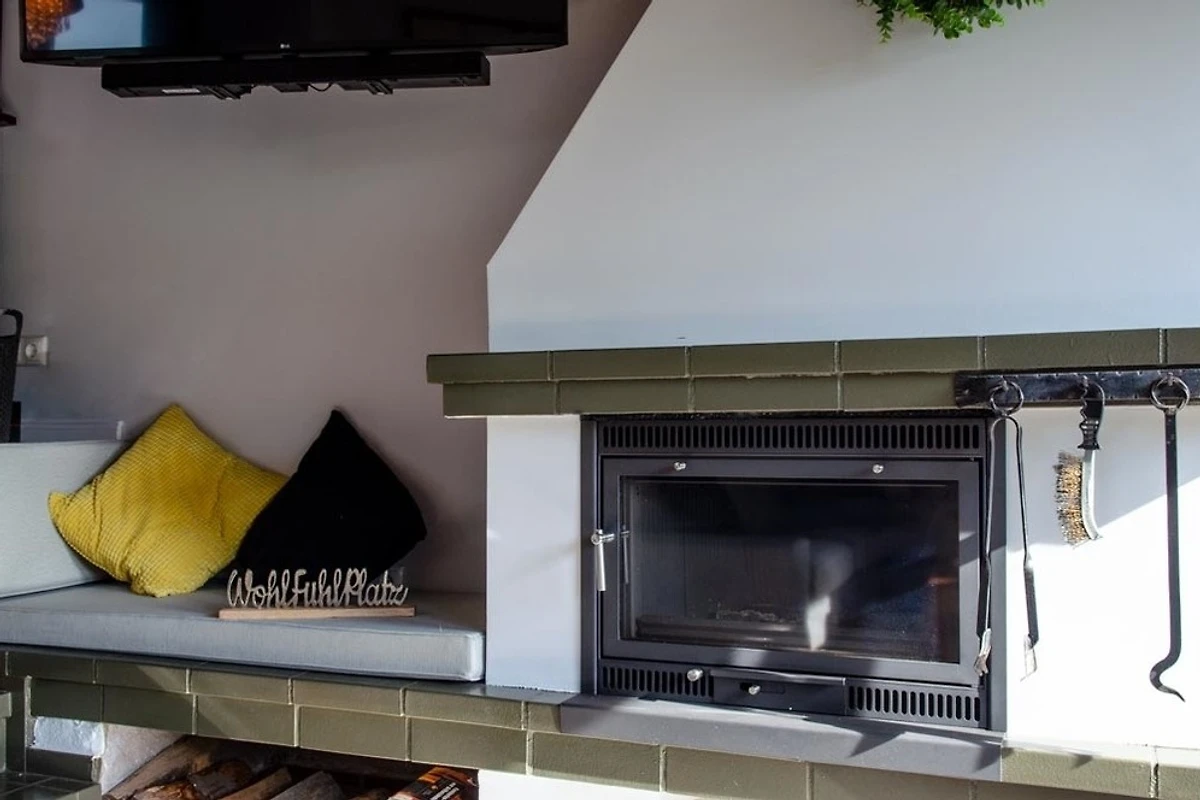 Im Wohnzimmer befindet sich ein lauschiger Kamin, an dem man bei einem Getränk in kuscheliger Atmosphäre den Abend ausklingen lassen kann. Alternativ beschliesst man den Tag mit einem spannenden Film auf dem grossen Flachbildfernseher.