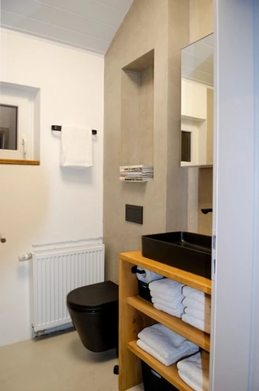 Das Cottage verfügt über eine vollausgestattete Küche, einen separaten Wohn- und Essbereich, der durch die Split-Level-Anordnung ein entspanntes Raumgefühl aufkommen lässt, ein modernes Bad mit grosszügigem Duschbereich und einen Abstellraum mit Waschtrockner. WLAN wird ebenfalls bereitgestellt.