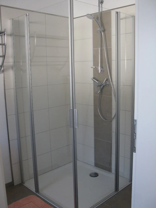 Bad: ebenerdige Dusche (1x1m), WC, Waschbecken, Waschmaschine