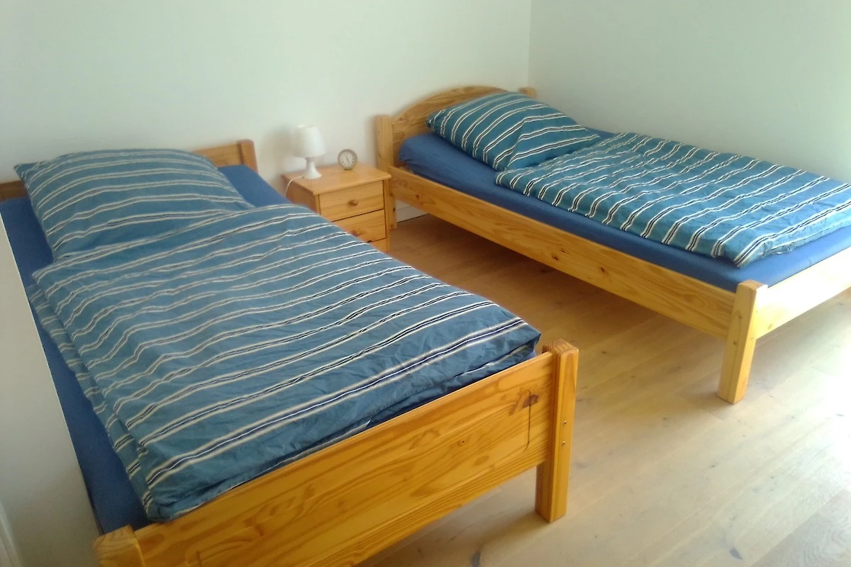 Schlafzimmer: 2 Einzelbetten (je 1x2m), Kleiderschrank, Kommode