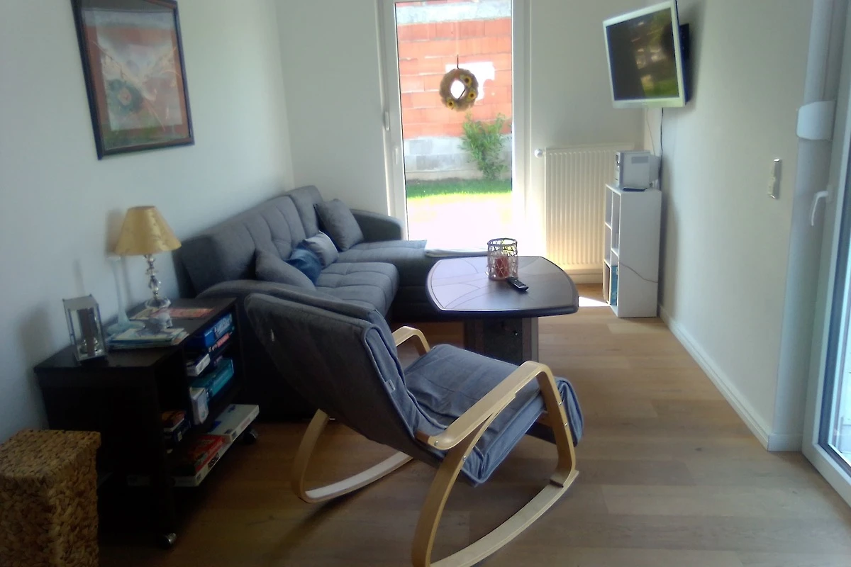 Wohnzimmer: Schlafsofa (1x2m), Sat-TV, Radio