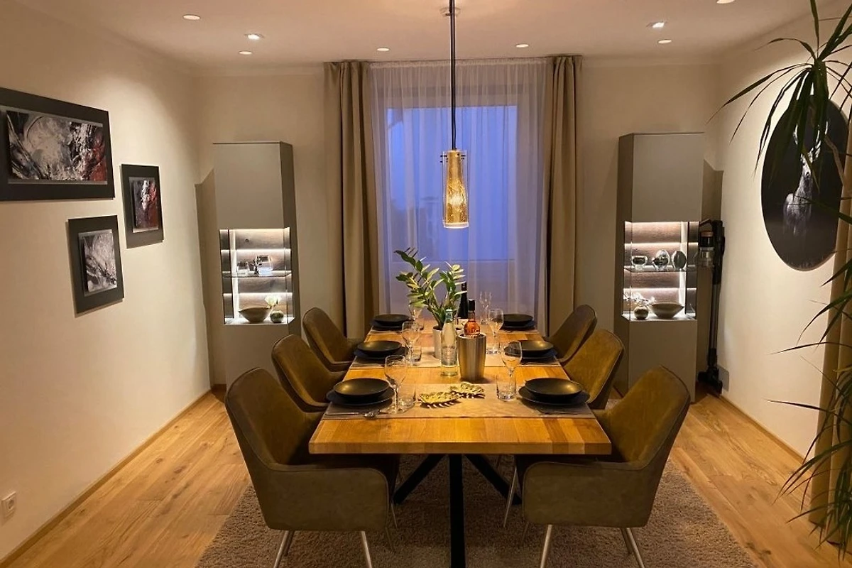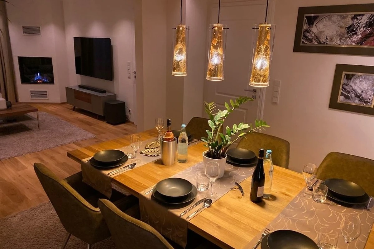 Bei einem schönen Glas Wein vorm Kamin oder einem leckeren Abendessen im stilvoll eingerichteten Esszimmer lässt sich ein ereignisreicher Tag erholsam beenden. Ein Grillabend auf dem Lounge-Balkon oder auf der Sonnenterrasse ist ebenfalls eine willkommene Alternative.