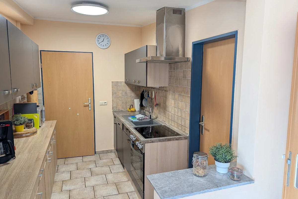 Die Ferienwohnung besteht aus 2 Schlafzimmern mit separaten Bädern , einem Wohnzimmer mit tollem Kachelofen , einer Küche und toller Terrasse mit Grill und Blick ins Grüne. Sie ist grosszügig geschnitten und für 4 Personen super geeignet.