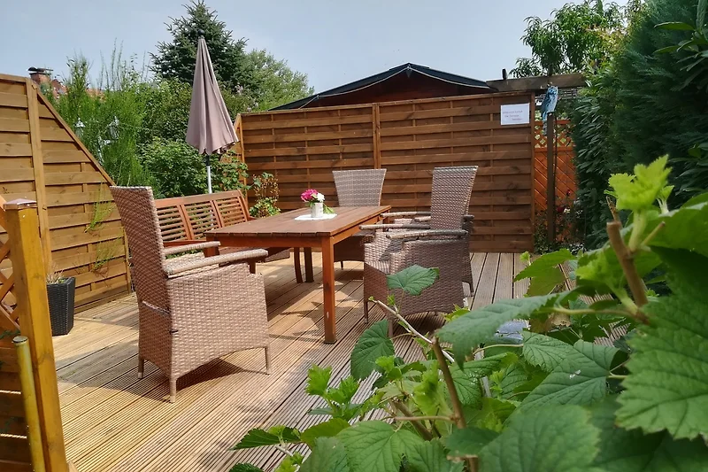 Fürs gemütliche Beisammensein steht eine Terrasse mit Grill zur Verfügung.