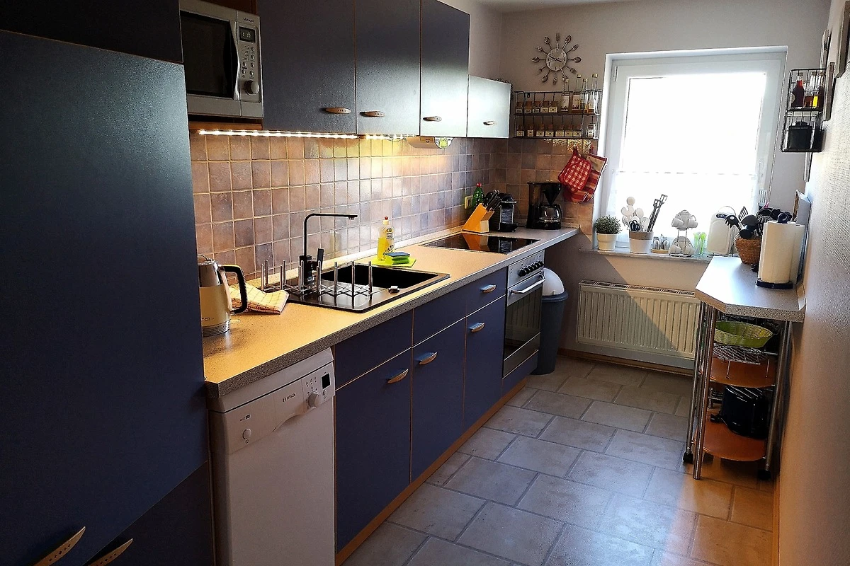 Die Ferienwohnung im ersten Stock ist grosszügig geschnitten und komplett ausgestattet mit allem was man für einen gelungenen Urlaub braucht. Das Fewo Starterpaket ist inklusive ( Kücherolle, Toilettenpapier , Spüli, Spülertabs ,Geschirrtücher )