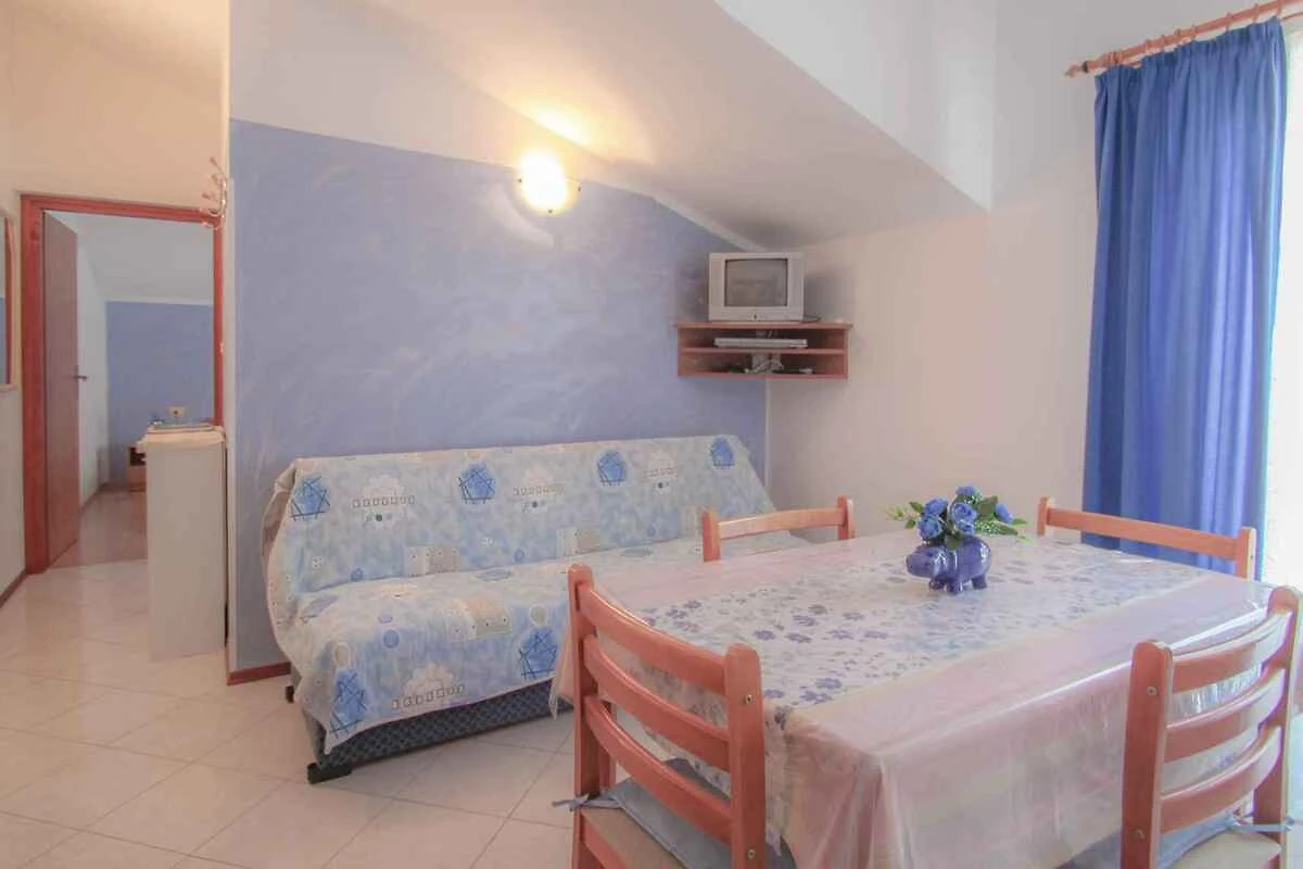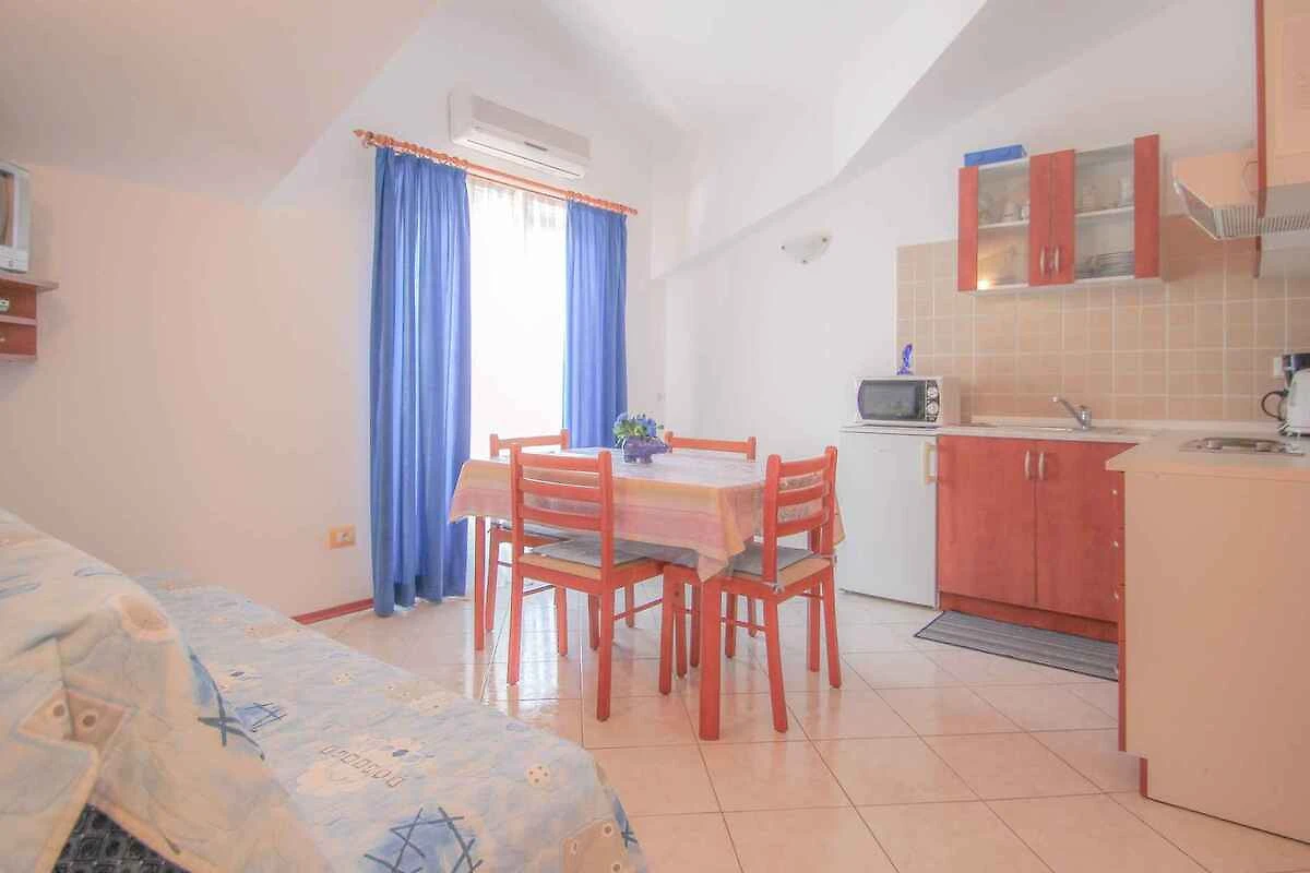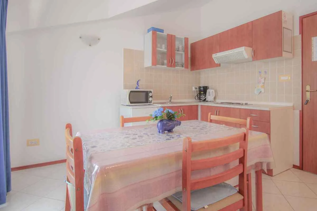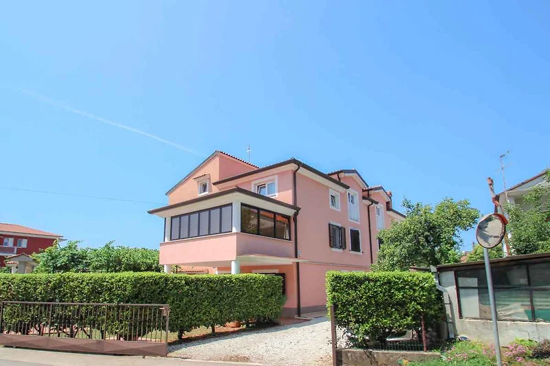 Umag, Ortsteil Komunela. Die Ferienwohnung befindet sich auf einem Gartengrundstück. Der Vermieter wohnt ständig im Haus, nutzt jedoch einen separaten Eingang. Im selben Gebäude gibt es noch eine weitere Wohneinheit: IST UMA 955. Die Zufahrt erfolgt über eine Nebenstrasse (asphaltiert). Parkplatz auf dem Grundstück.