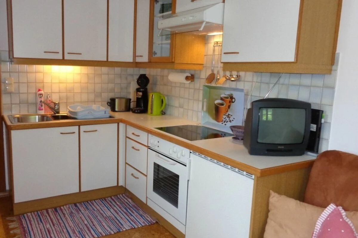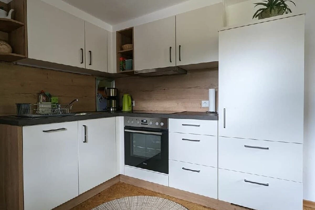 Die Küche ist ausgestattet mit einem Kühlschrank mit Gefriermöglichkeit, einem Backrohr, einem Herd mit 4 Platten, Wasserkocher, Kaffeemaschine, Toaster, Töpfen-Pfannen, Gläser sowie Tafel- und Kaffeegeschirr für 6 Personen uvm.