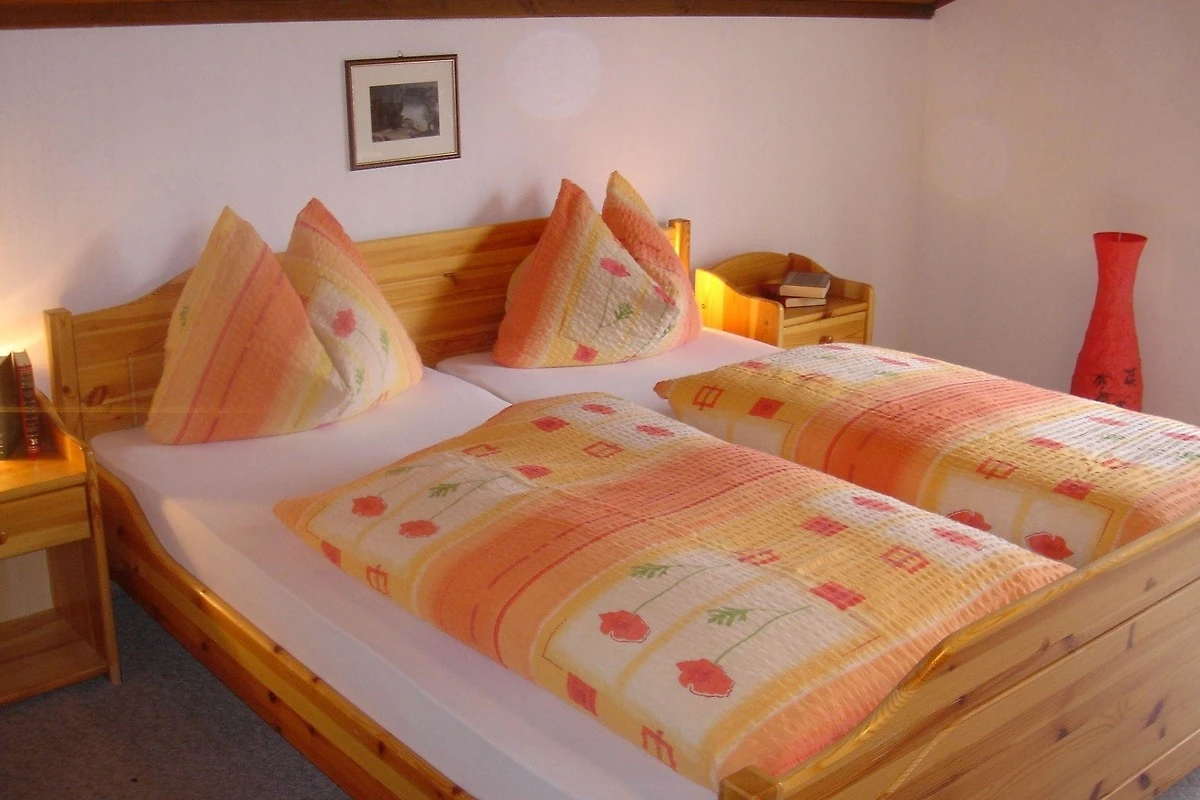 2. Stock: grosser Vorraum, WC und Badezimmer mit Waschbecken, Dusche und Badewanne. 2 Einzel-, 2 kleine Doppel-, 1 Doppel- und 1 Dreibettzimmer teilweise mit Waschbecken und Balkon. Zimmer einfach aber sauber.